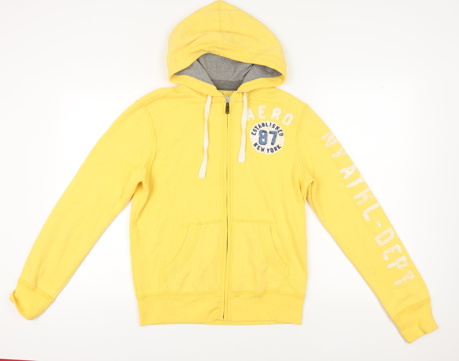 Aeropostale Yellow Full Zip Hoodie, Men's S, Logo Accents