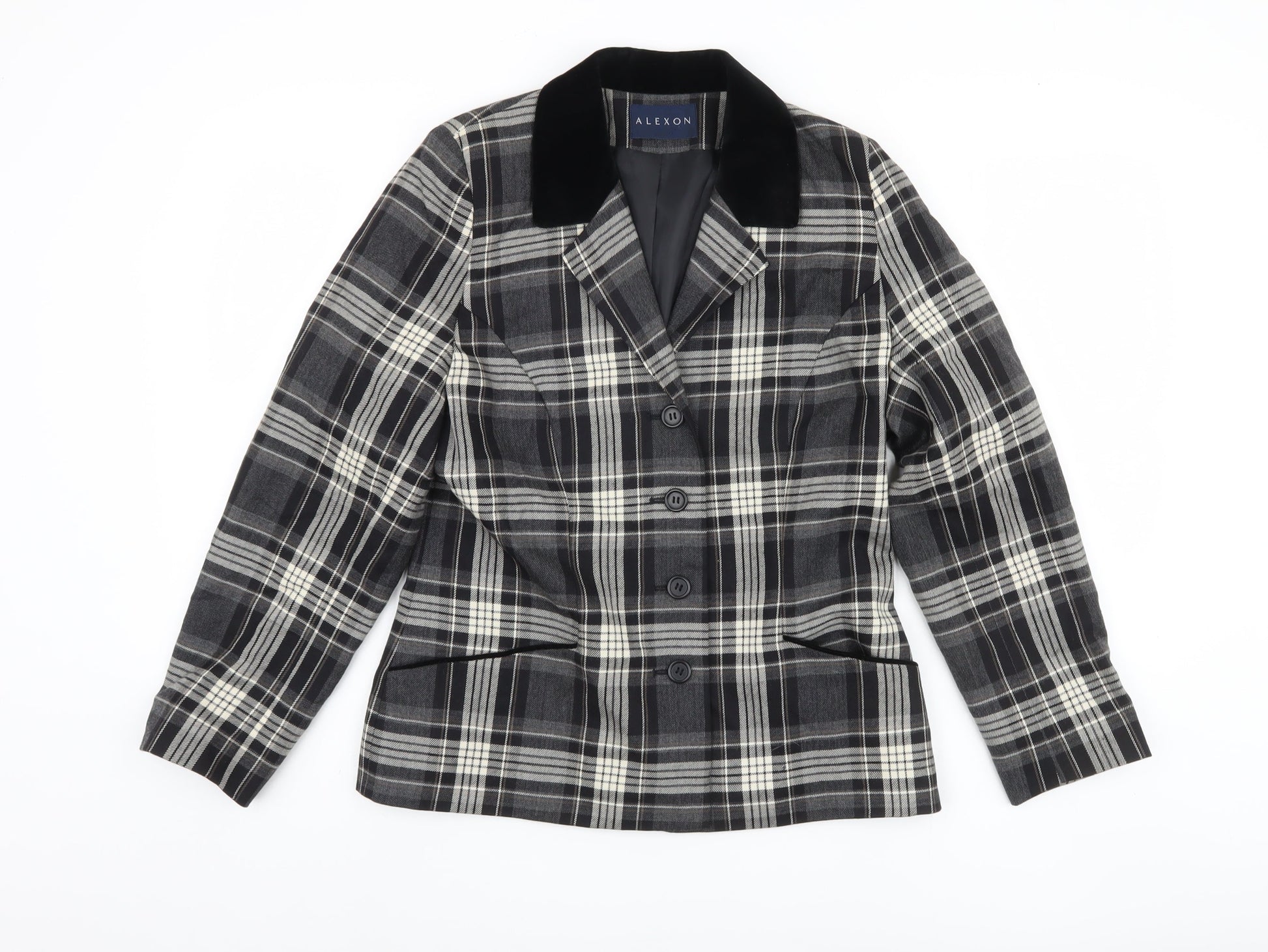 Alexon Women's Black Plaid Blazer 12 - Wool Tailored Jacket