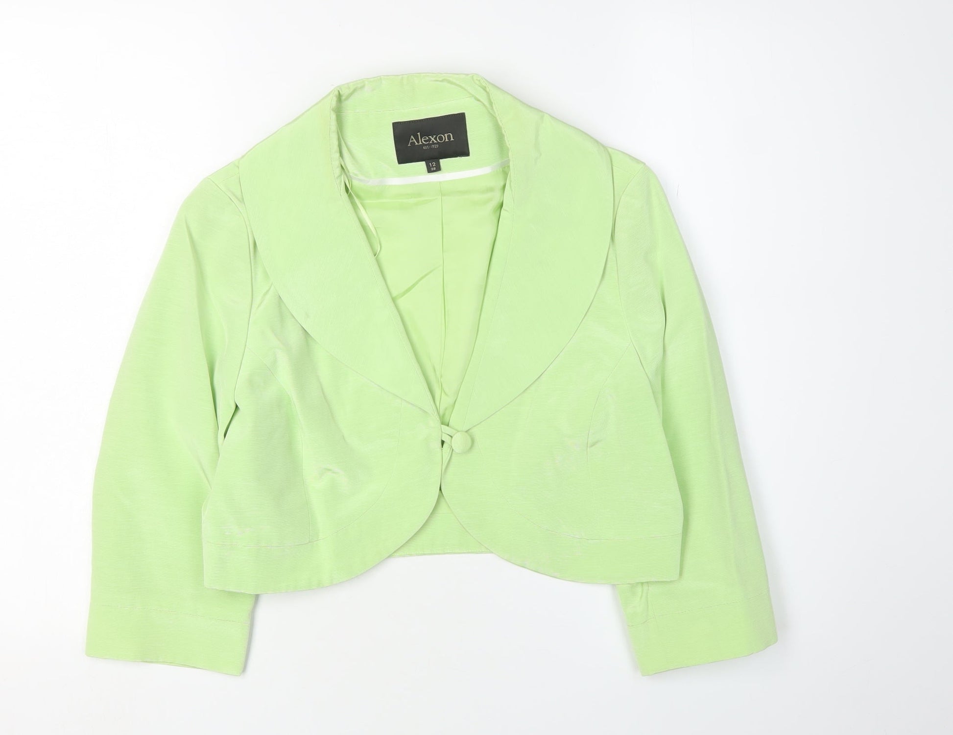 Alexon Women's Green Cropped Blazer, Size 12, Shawl Collar