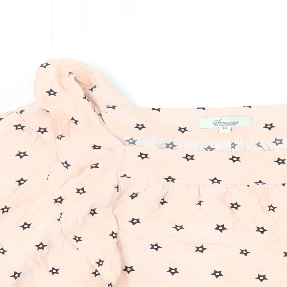 Alice Temperley Womens Pink Geometric Viscose Basic Blouse Size 16 Square Neck - Ruffles