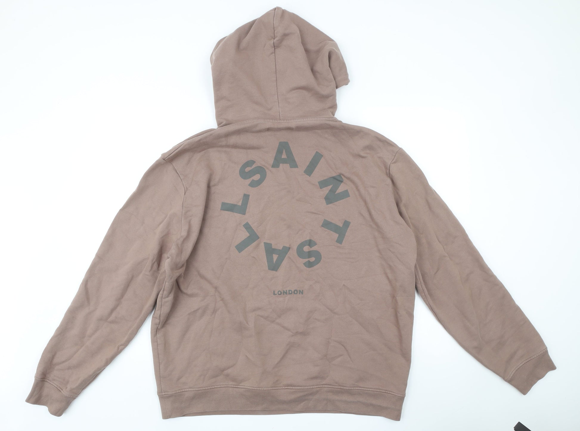 AllSaints Men’s Brown Hoodie Medium Pullover Logo Graphic Cotton