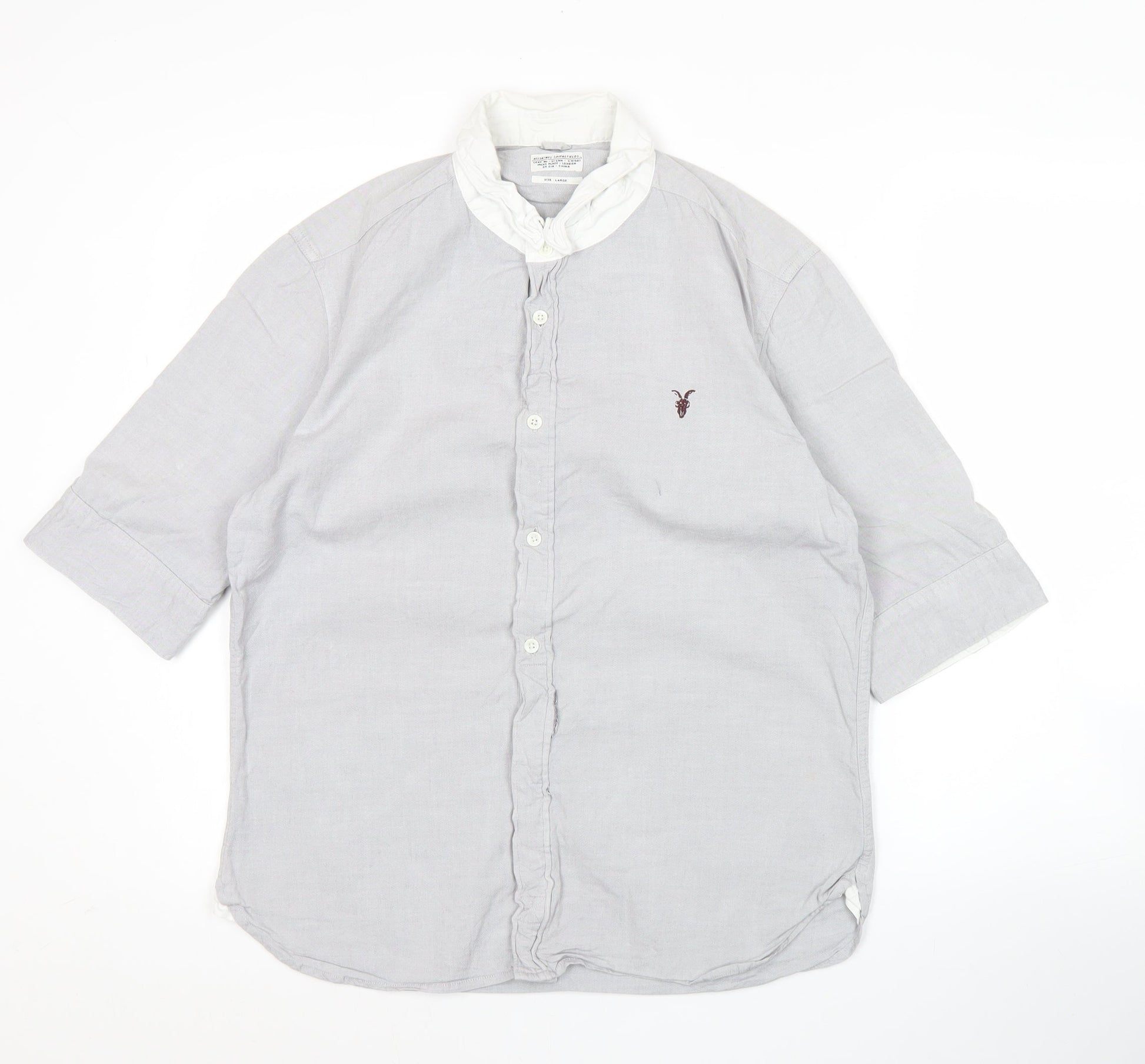 AllSaints Men’s Grey Oxford Perry Shirt L 3/4 Sleeve Cotton