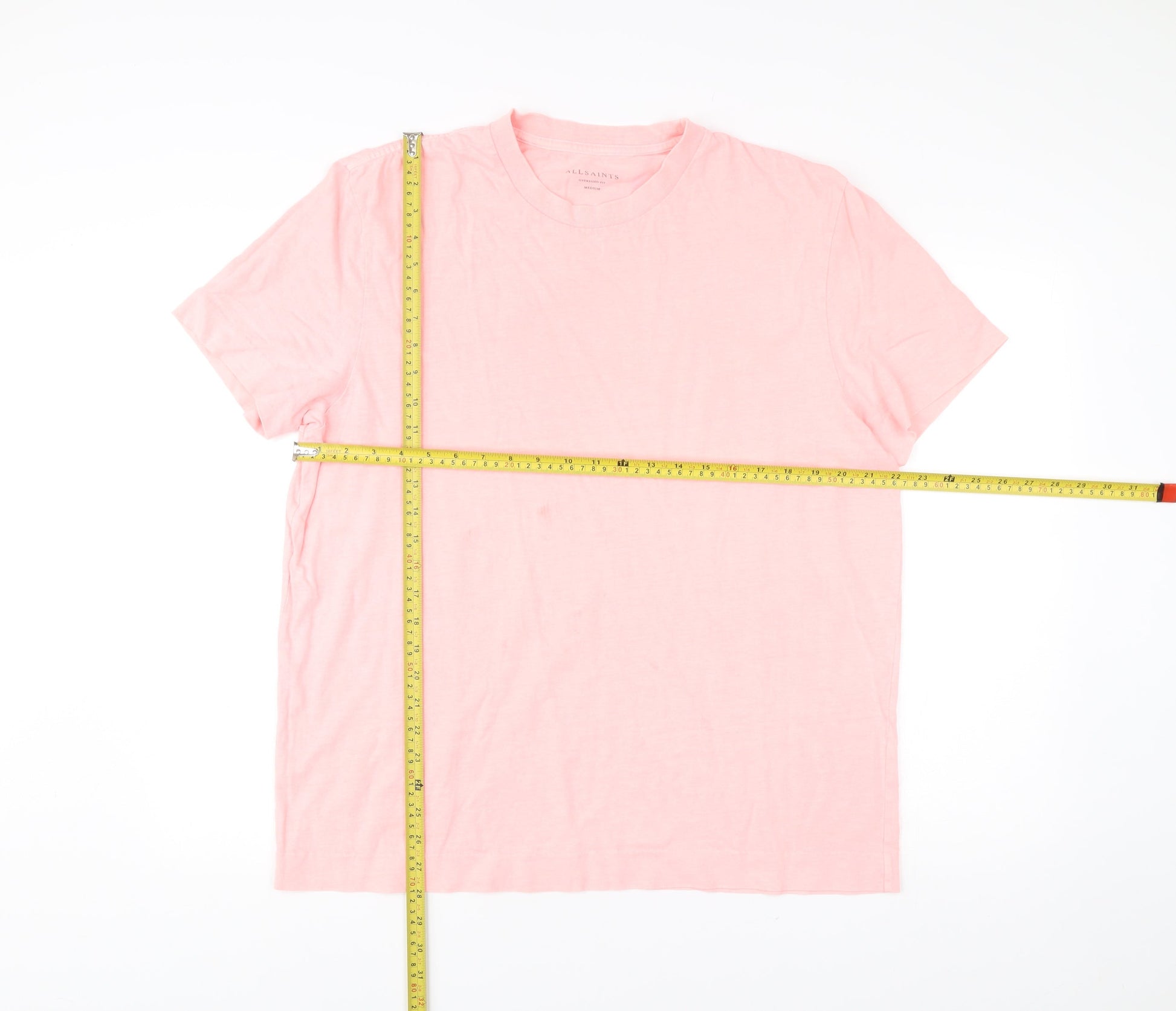 AllSaints Men’s Pink Oversized Fit Crew Neck Cotton T-Shirt Medium