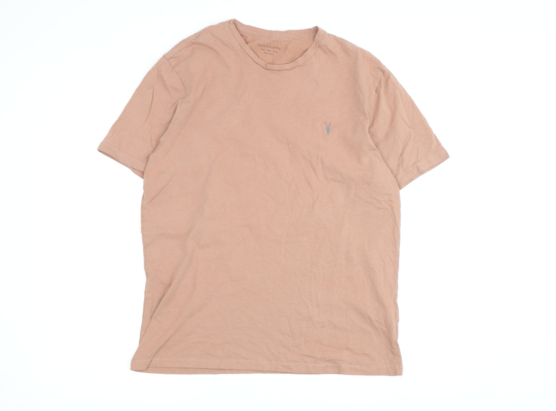 AllSaints Men's Beige Crew Neck T-Shirt, Size L, Regular Fit