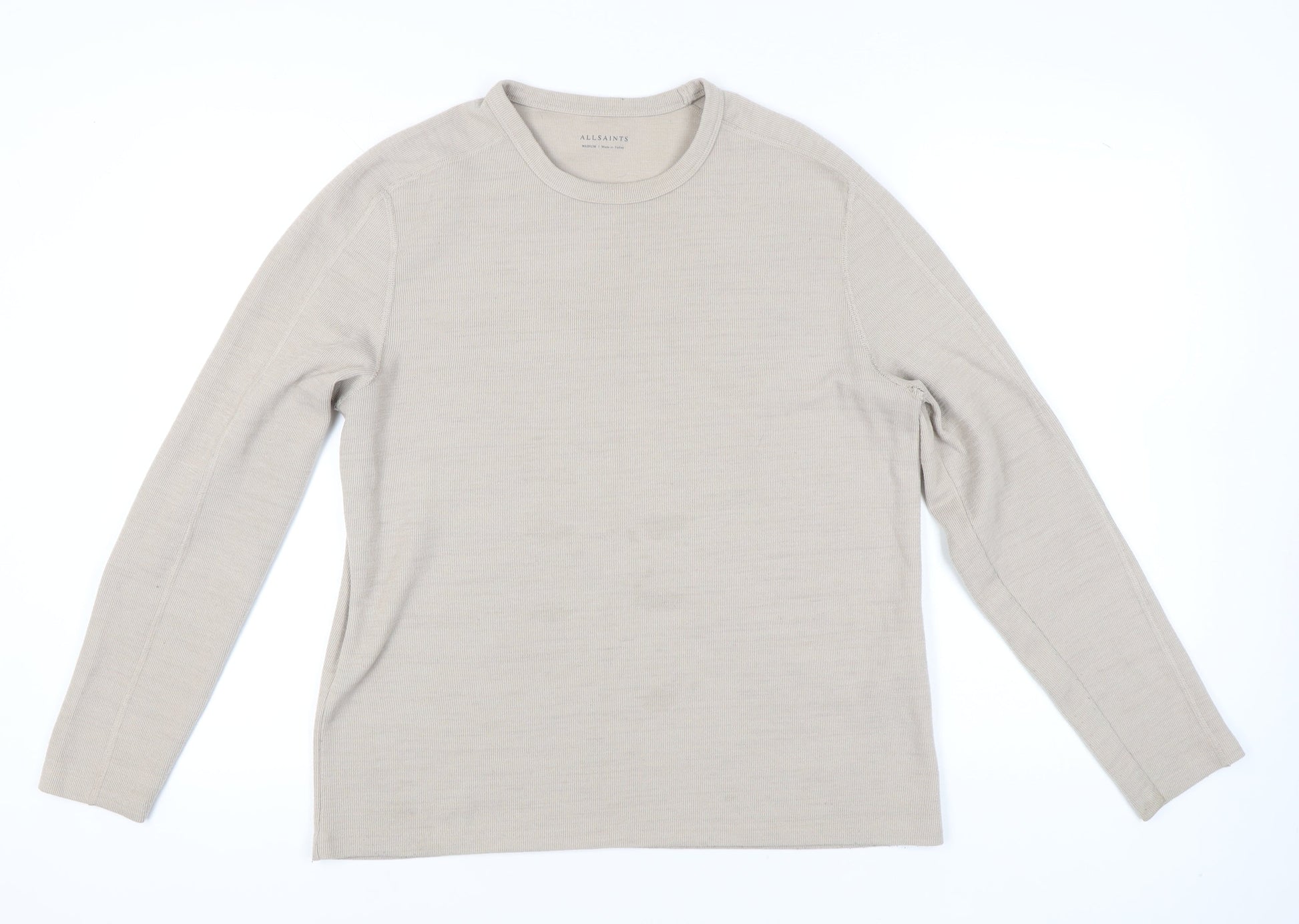 AllSaints Mens Beige Medium Pullover Jumper Crew Neck Knit