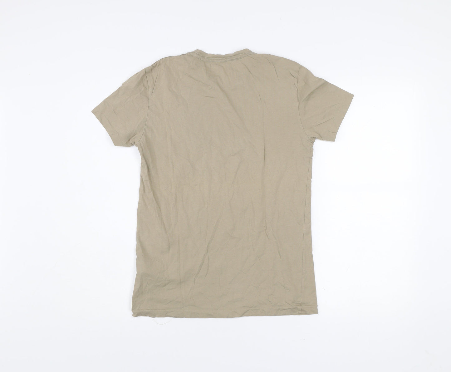 AllSaints Men's Beige XS Slim Fit Cotton Crew Neck T-Shirt