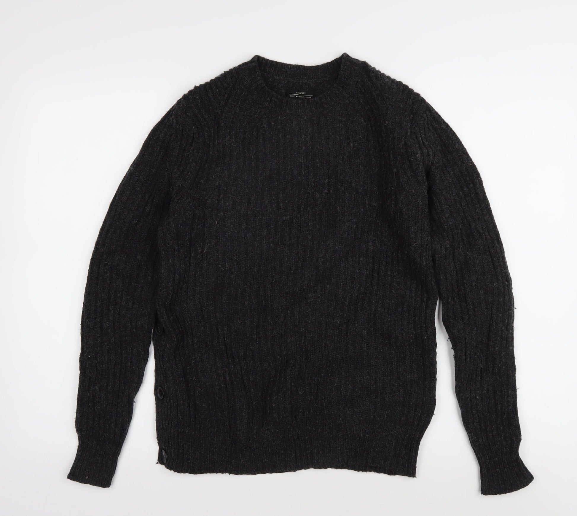 AllSaints Men's Black Cable-Knit Pullover XS