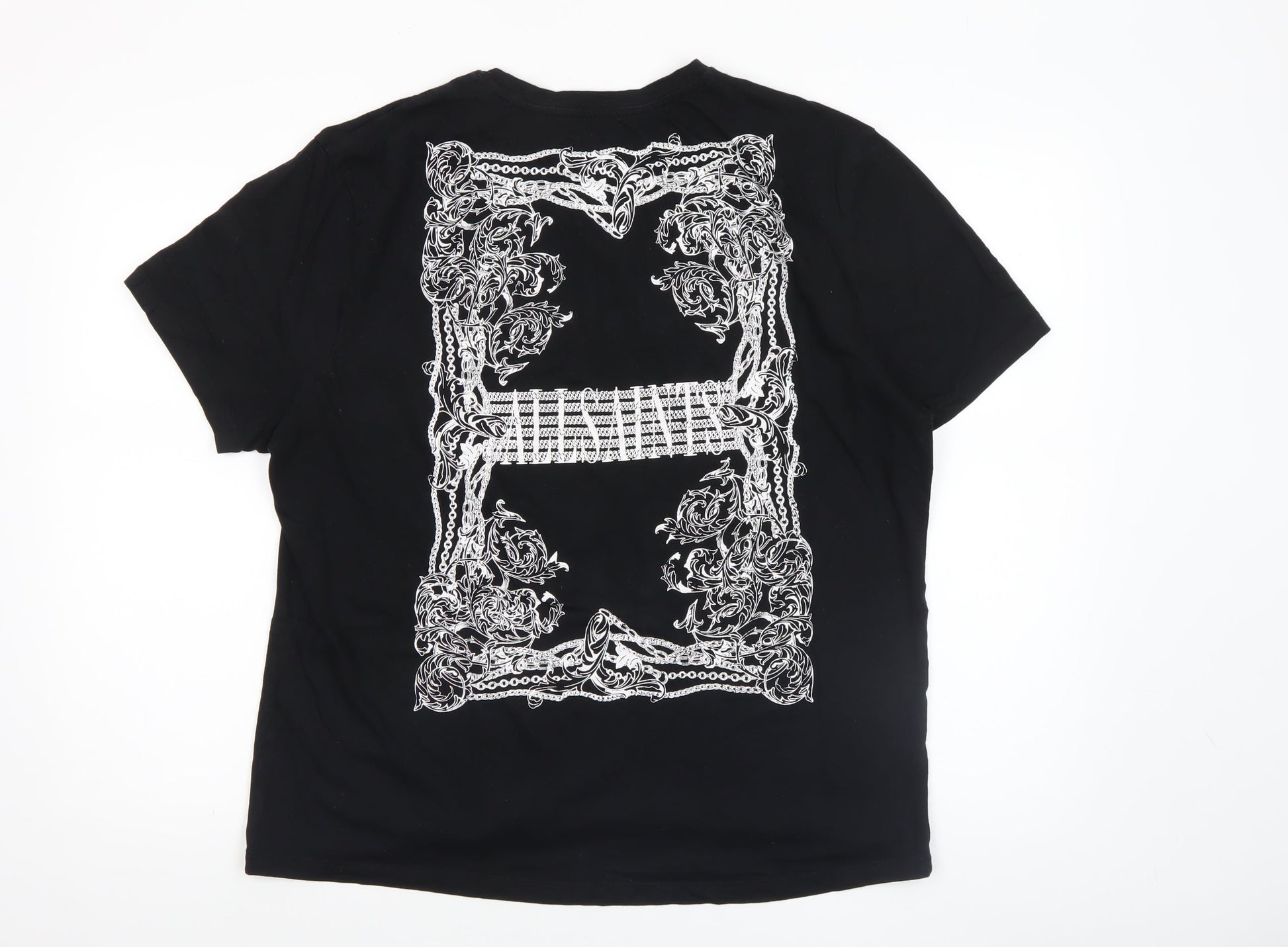 AllSaints Men's Black Cotton Graphic Crew Neck T-Shirt Medium