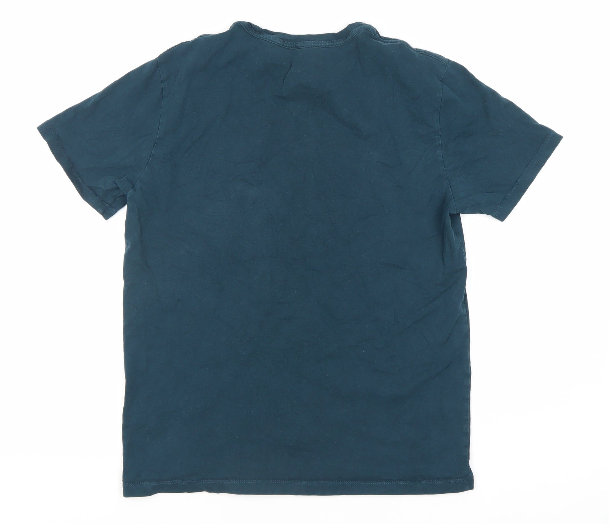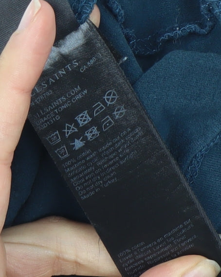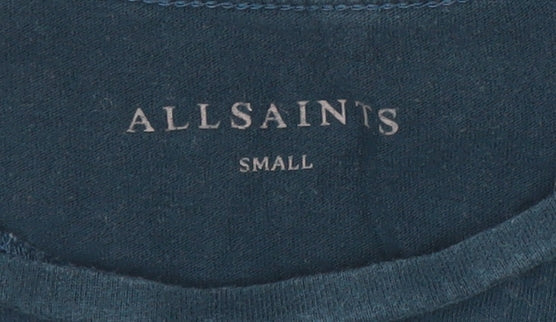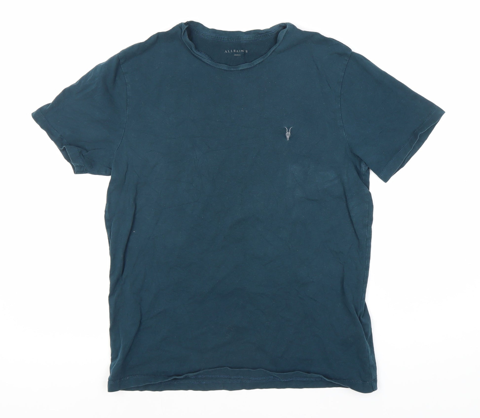 AllSaints Men's Blue Cotton T-Shirt - Small, Crew Neck, Logo