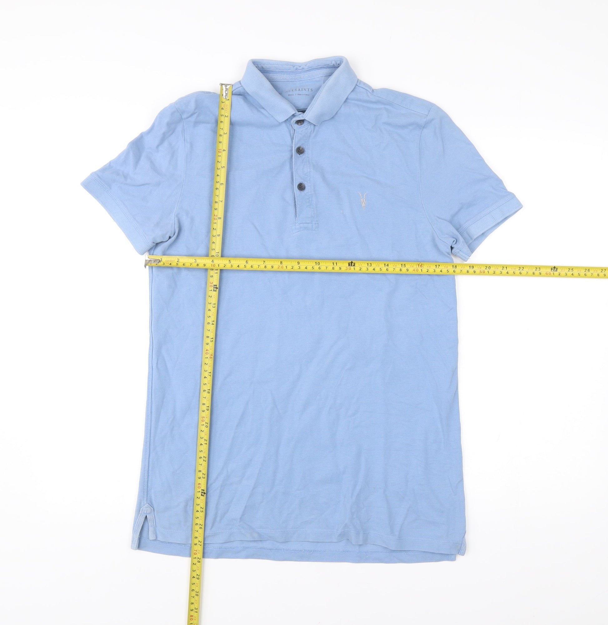 AllSaints Men's Blue Slim Fit Cotton Polo Shirt Size S