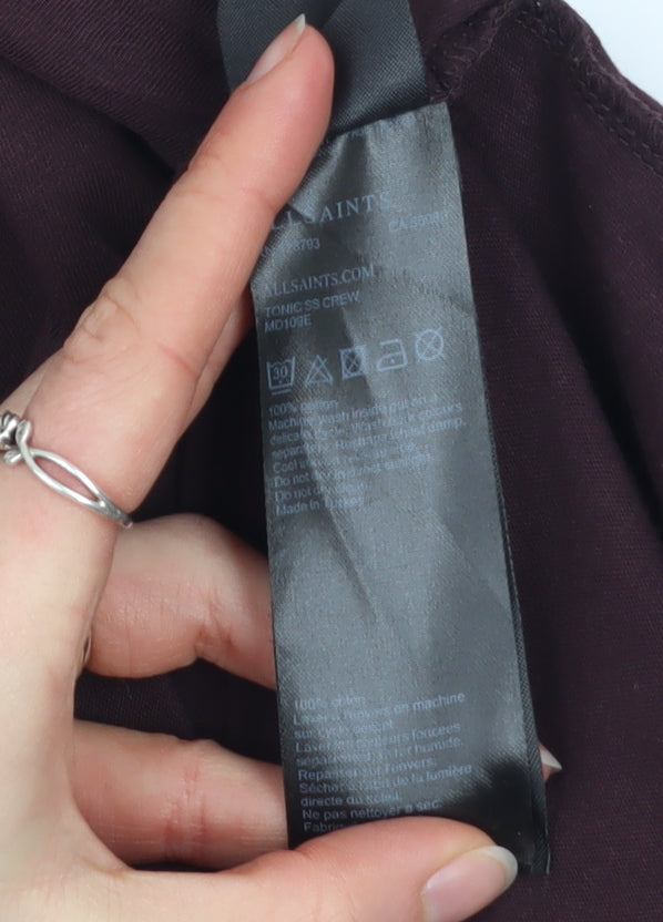 AllSaints Men's Brown Cotton Slim Fit Crew Neck T-Shirt XS