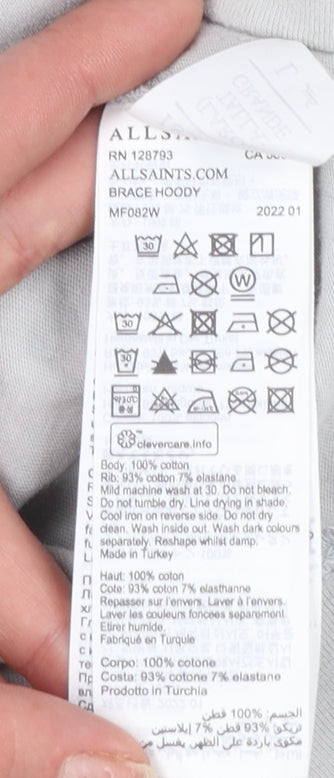 AllSaints Men's Grey Full Zip Hoodie Size L Regular Fit