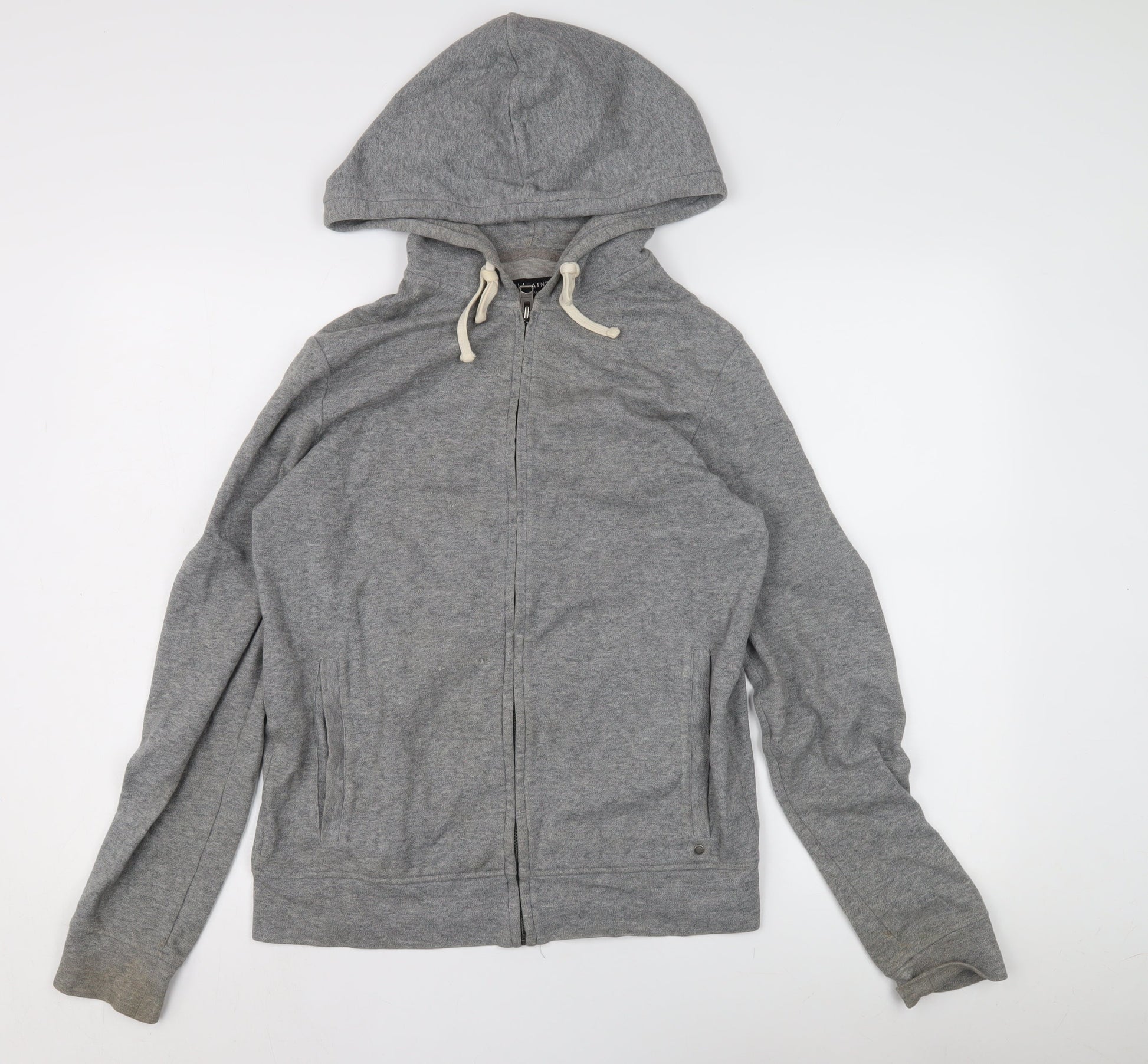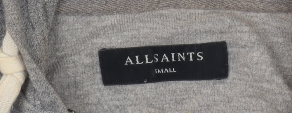 AllSaints Men's Grey Hoodie Small Zip Cotton Blend