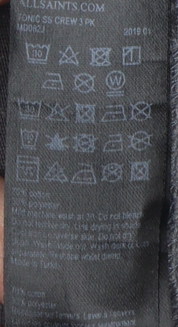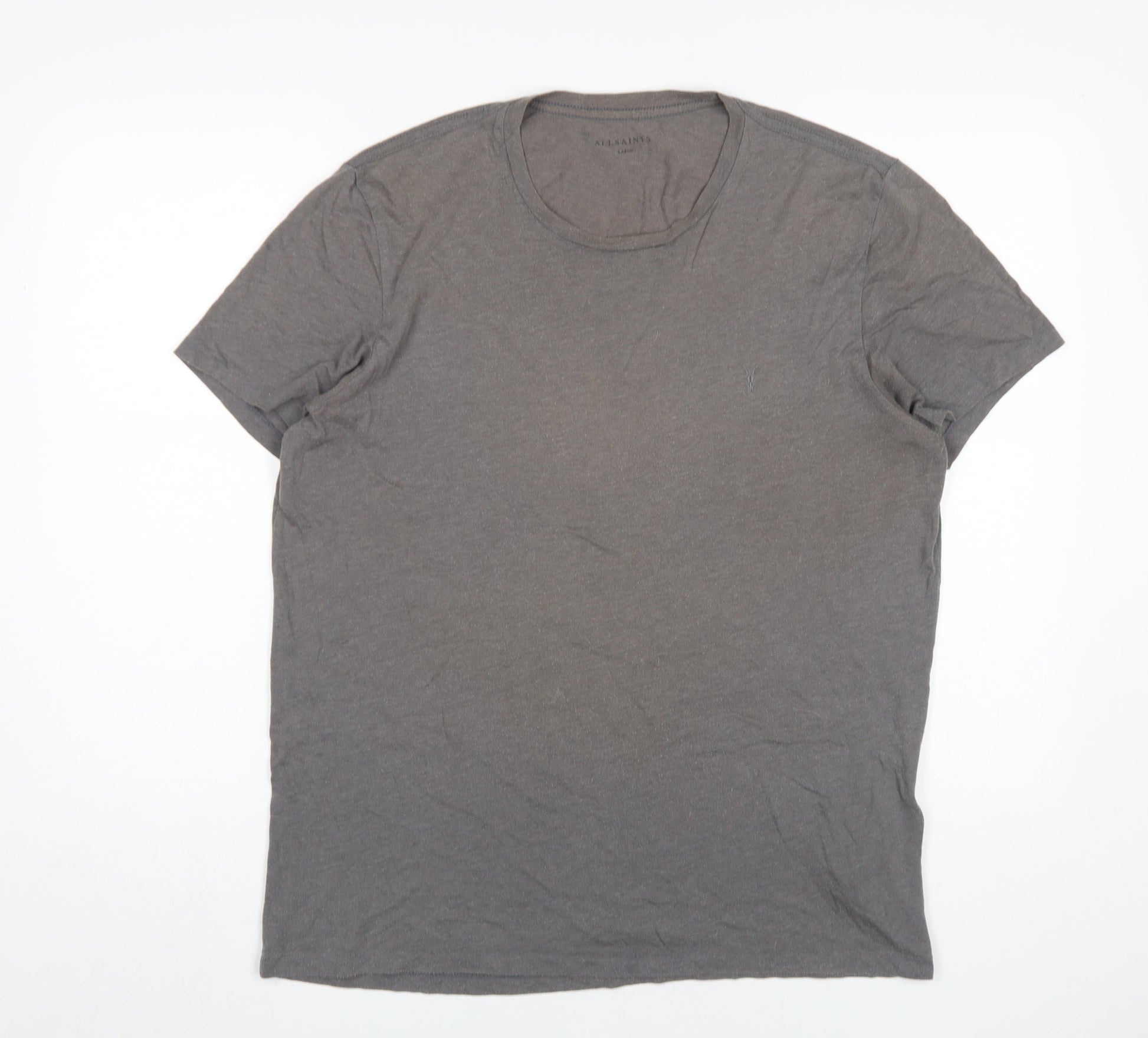 AllSaints Men's Grey Large Crew Neck T-Shirt, Short Sleeve