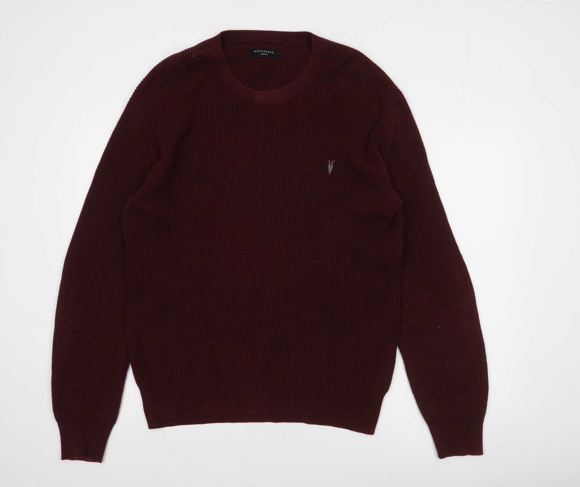 AllSaints Mens Red Cotton Waffle Knit Crew Neck Jumper Medium