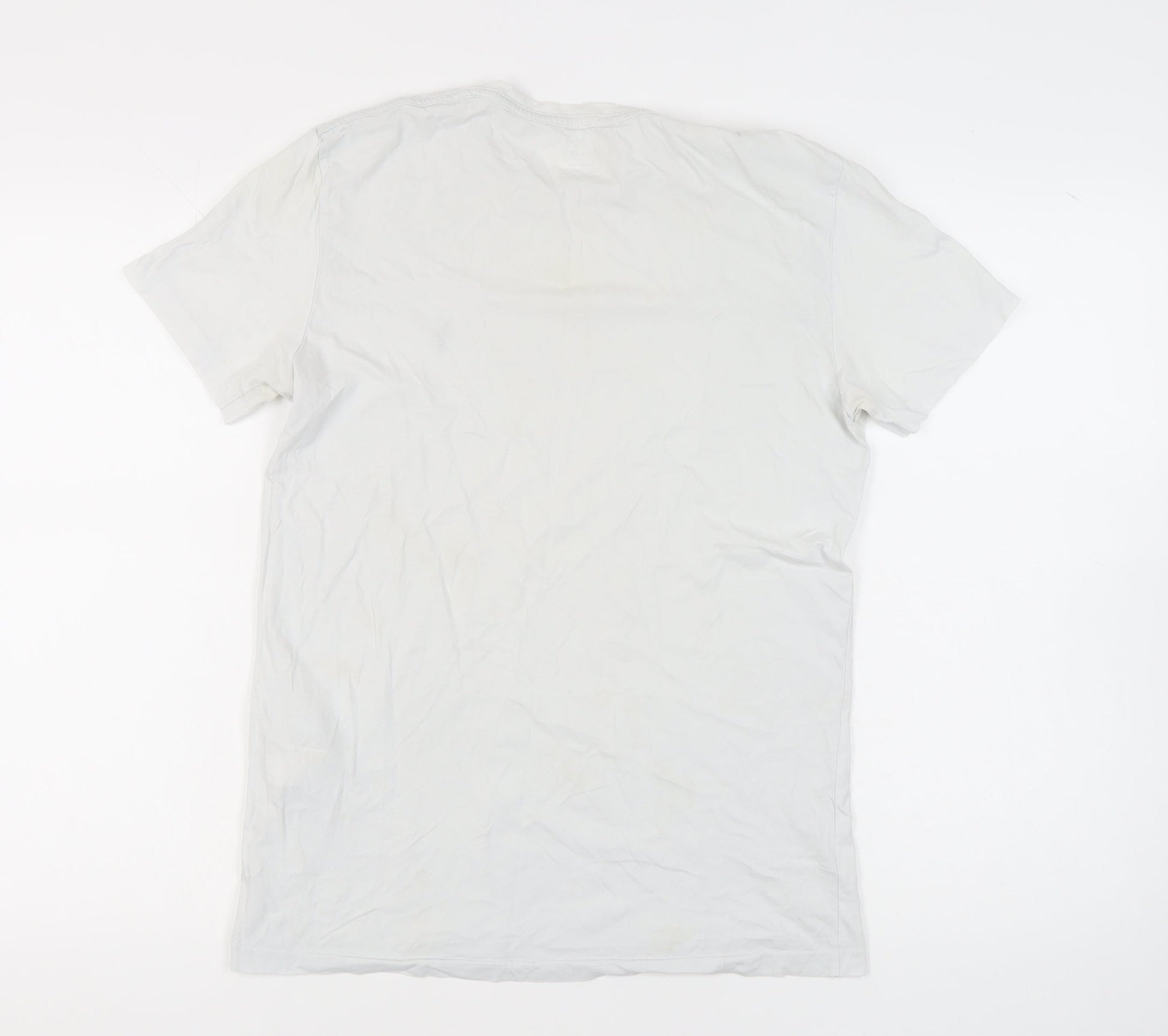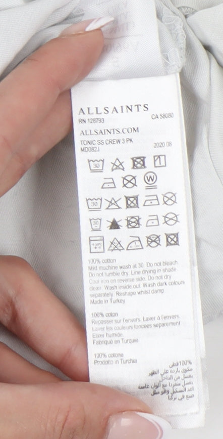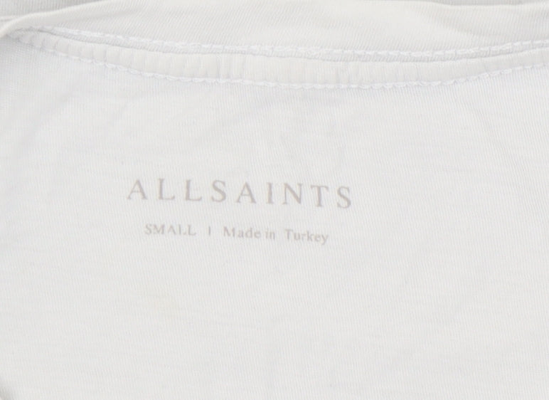 AllSaints Men's White T-Shirt, Size S, Crew Neck, Cotton