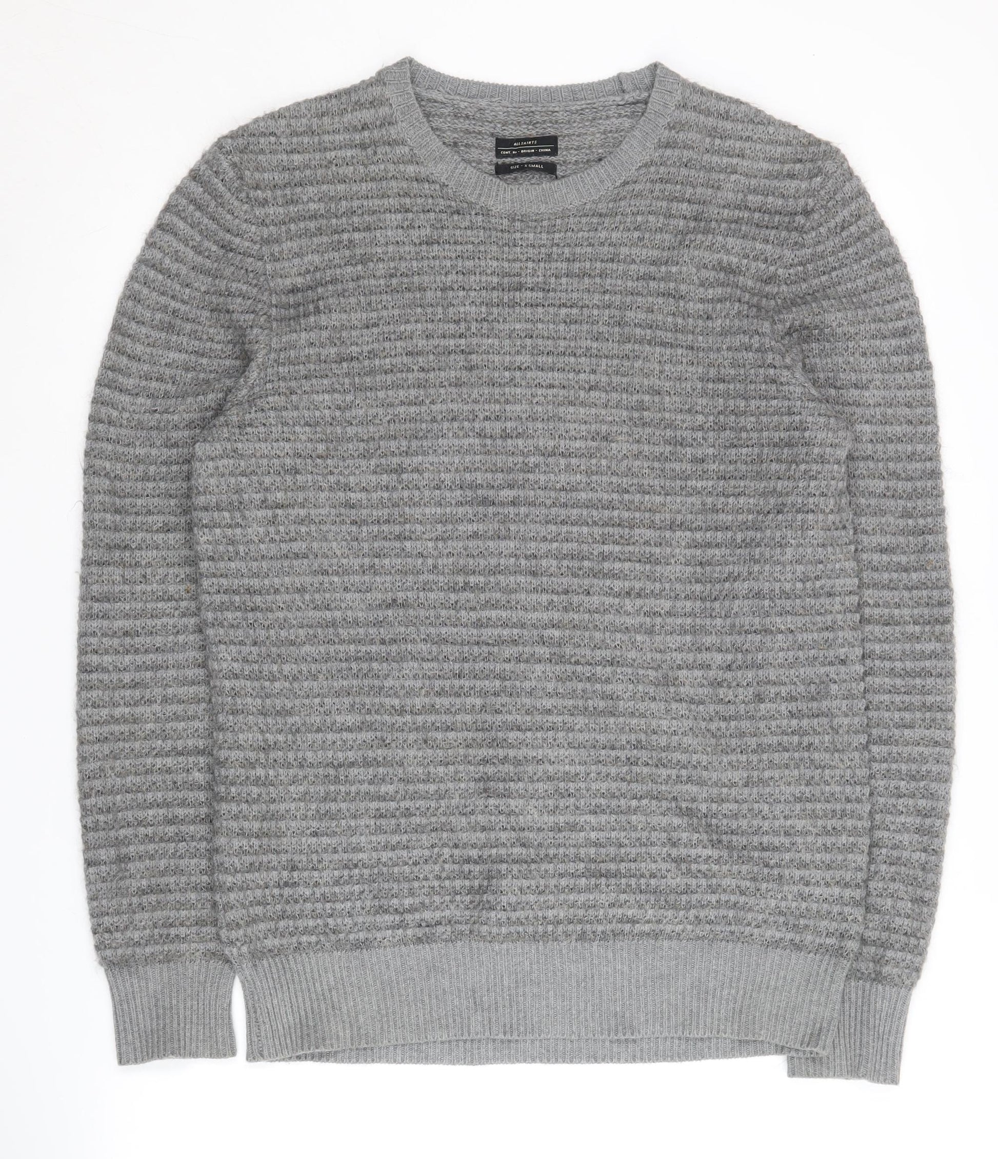 AllSaints Men's XS Grey Wool Blend Pullover Jumper