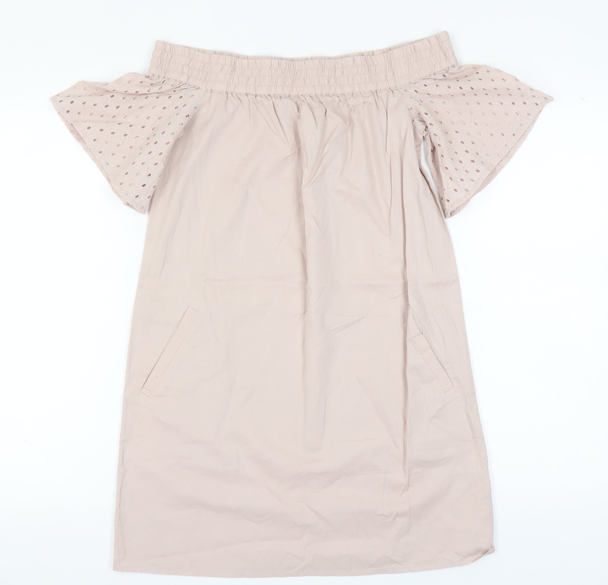 AllSaints Women's Beige Off Shoulder Shift Dress S