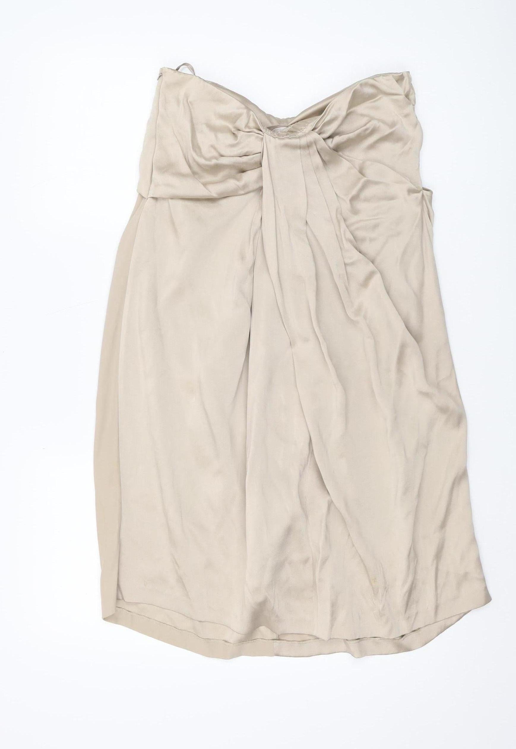 AllSaints Women's Beige Silk Strapless Dress, Bow Accent