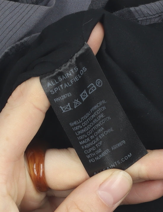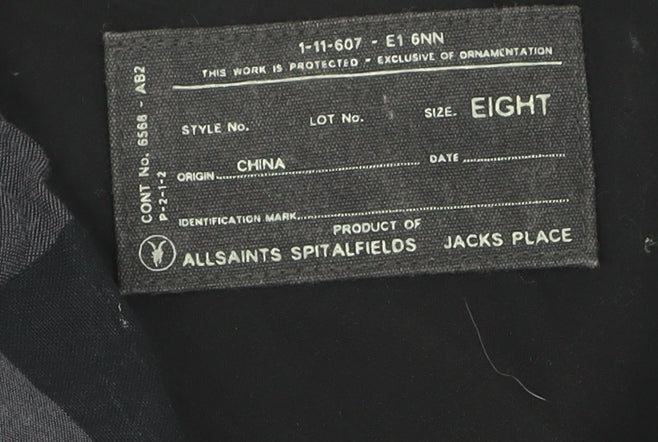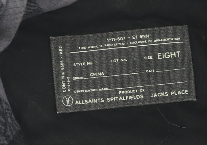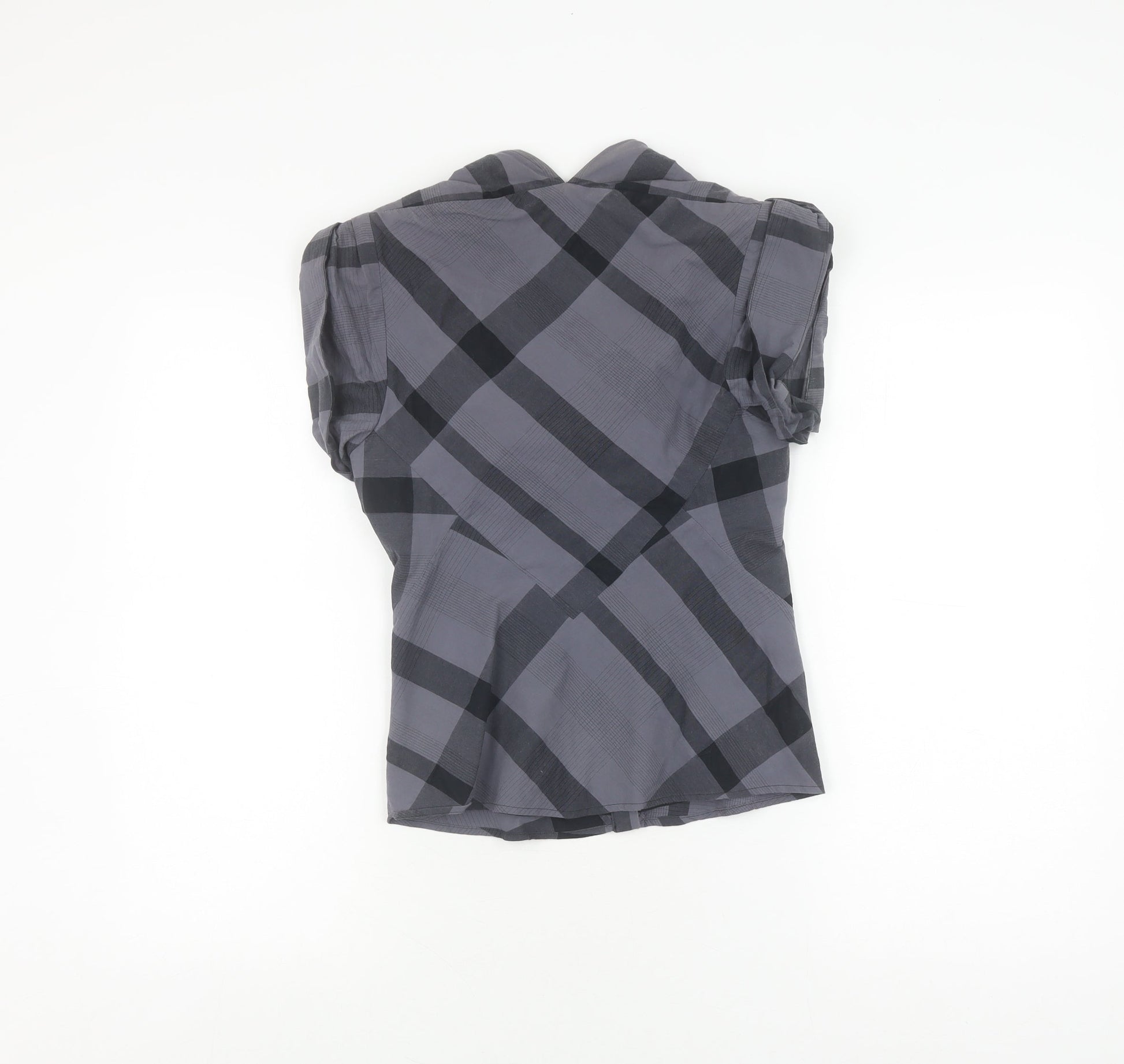 AllSaints Women's Black Check Blouse, Size 8, Short Sleeve