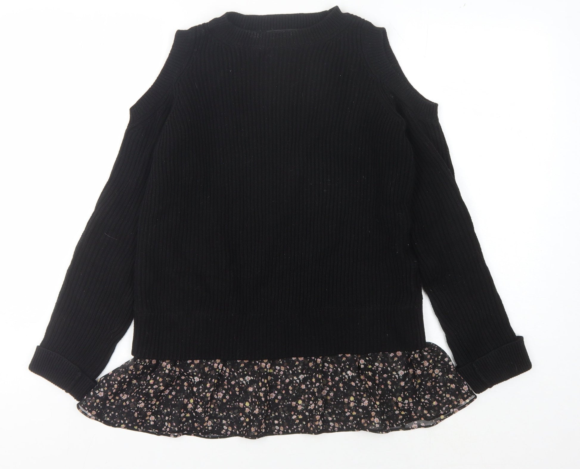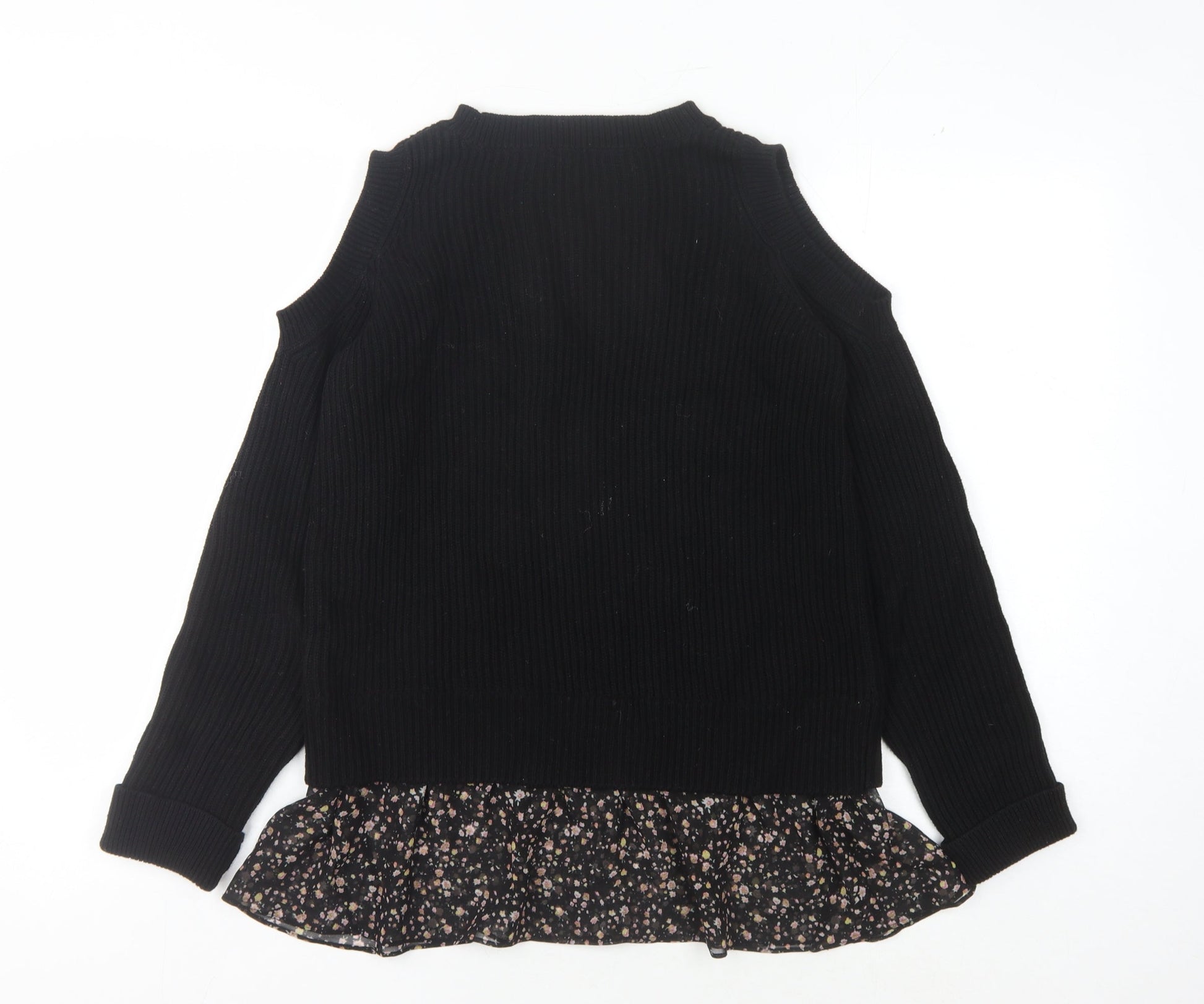 AllSaints Women's Black Cold Shoulder Pullover Jumper
