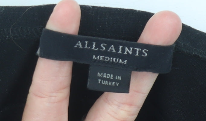 AllSaints Womens Black Medium Boat Neck 3/4 Sleeve Jersey Top