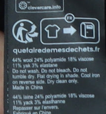 - Material Breakdown: 44% Wool 24% Polyamide 18% Viscose 11% Yak 3% Elastane