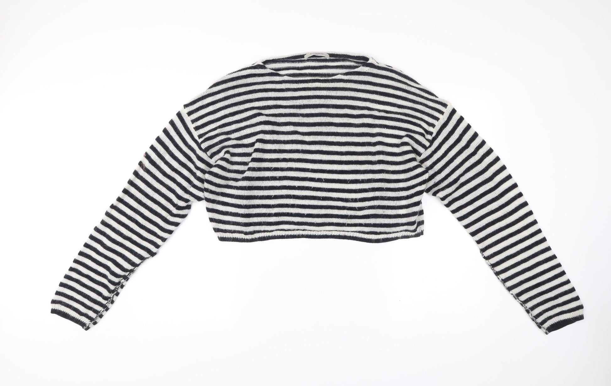 AllSaints Womens Black White Striped Cropped Jumper Size S