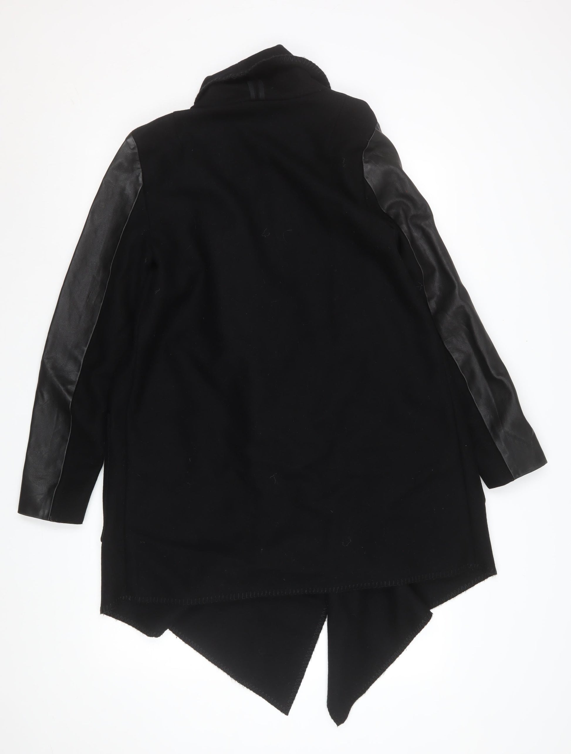 AllSaints Womens Black Wool Leather Trim Open Coatigan UK 10
