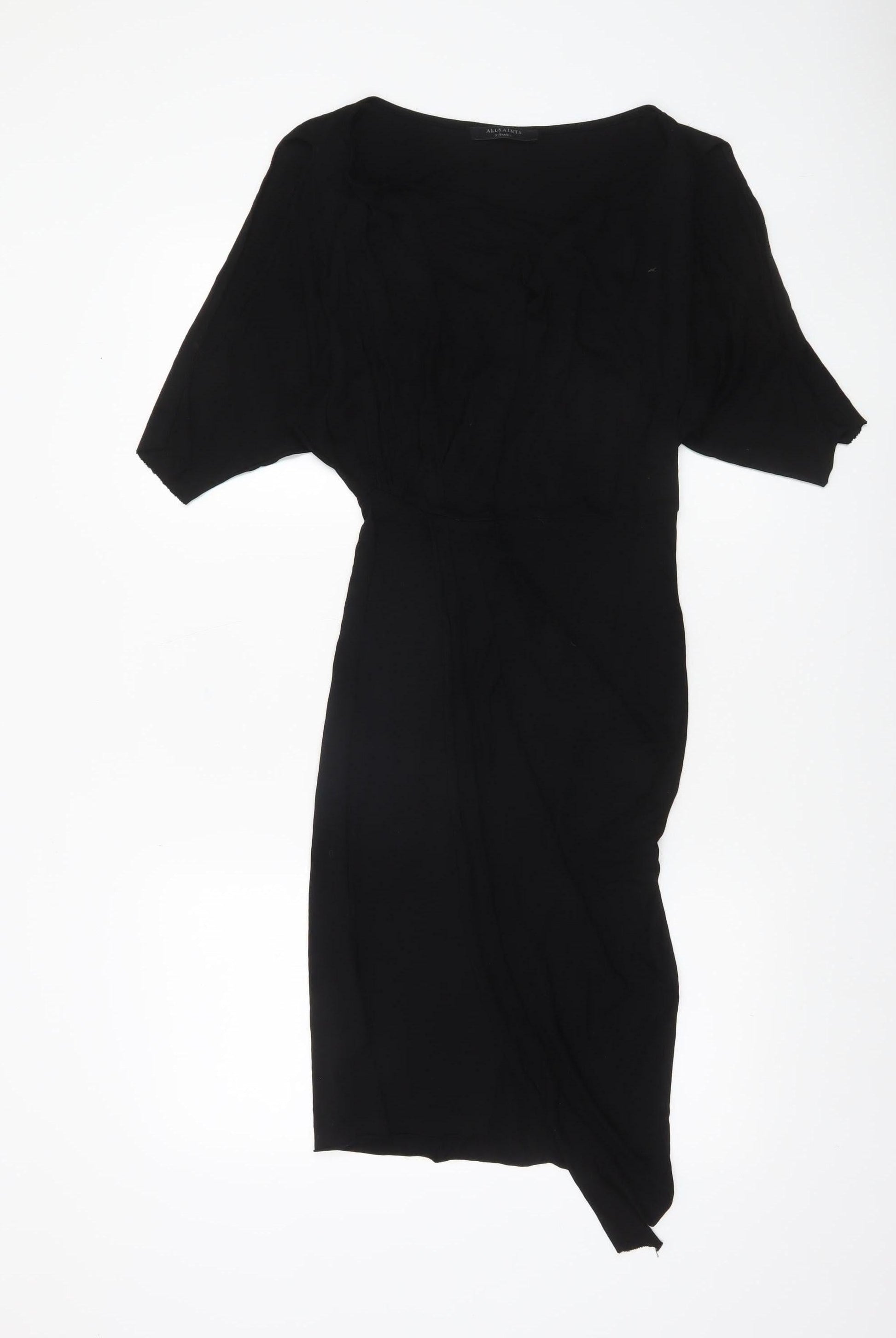 AllSaints Women's Black XS Asymmetric Knee Length Viscose Dress