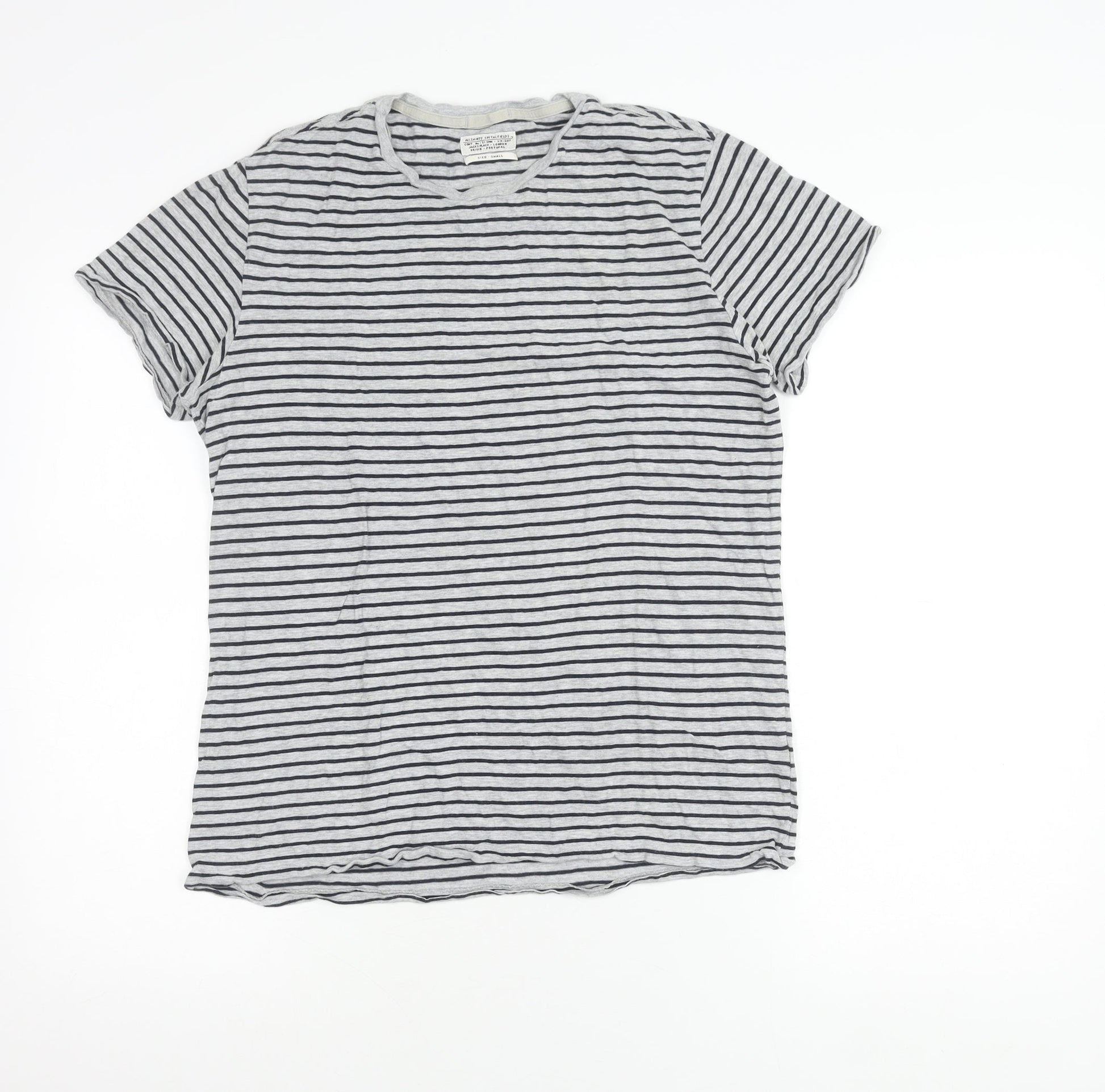 AllSaints Womens Grey Striped Cotton T-Shirt Size S Casual Top