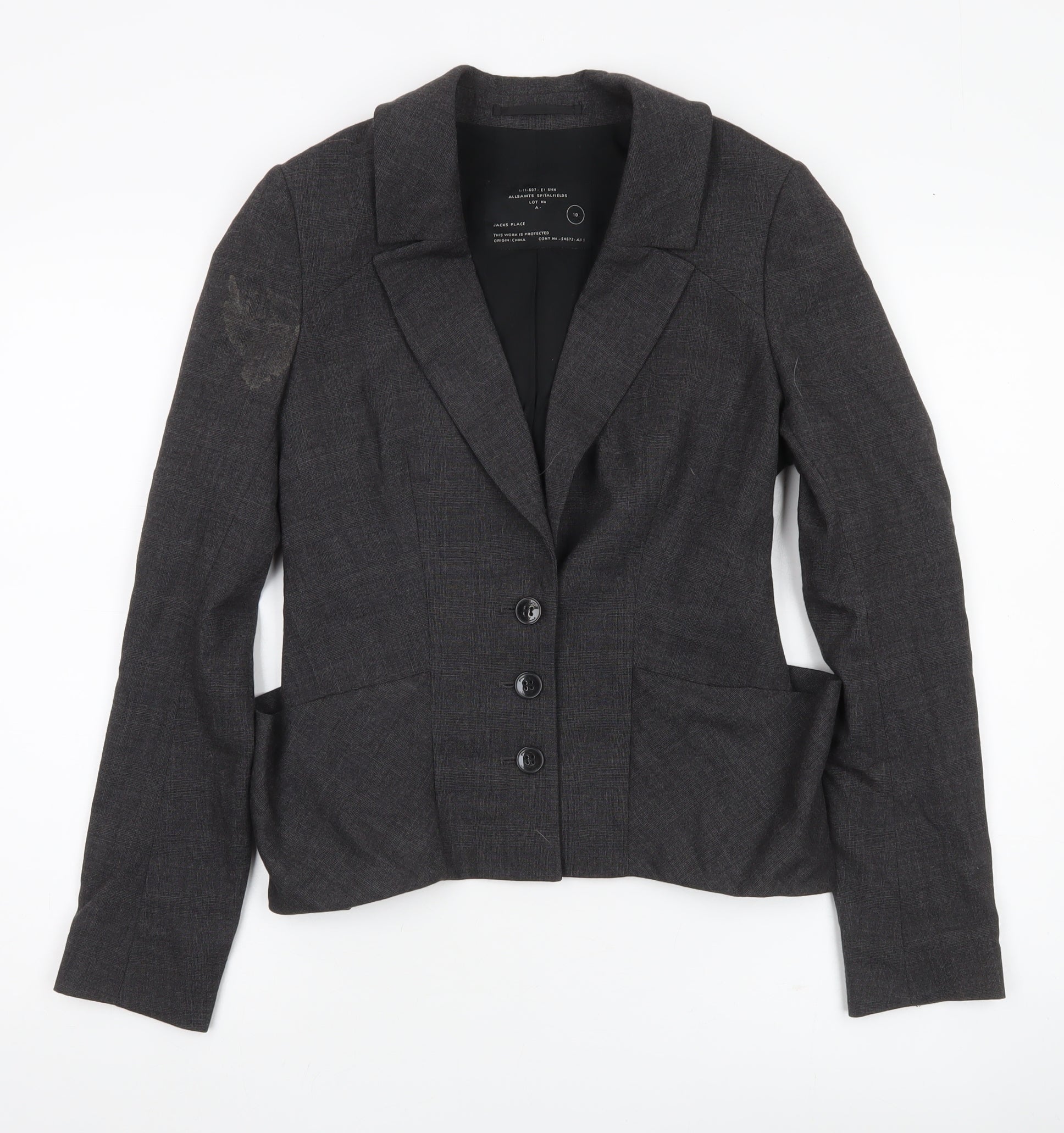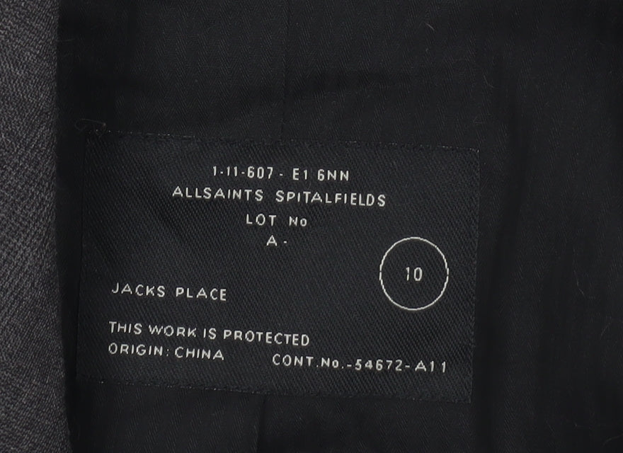 AllSaints Womens Grey Wool Blend Blazer Jacket Size 10 Slim Fit