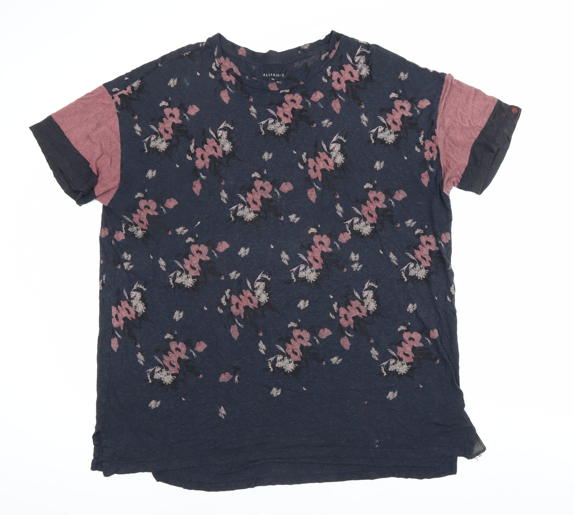 AllSaints Women's Multicoloured Floral T-Shirt L Viscose Wool
