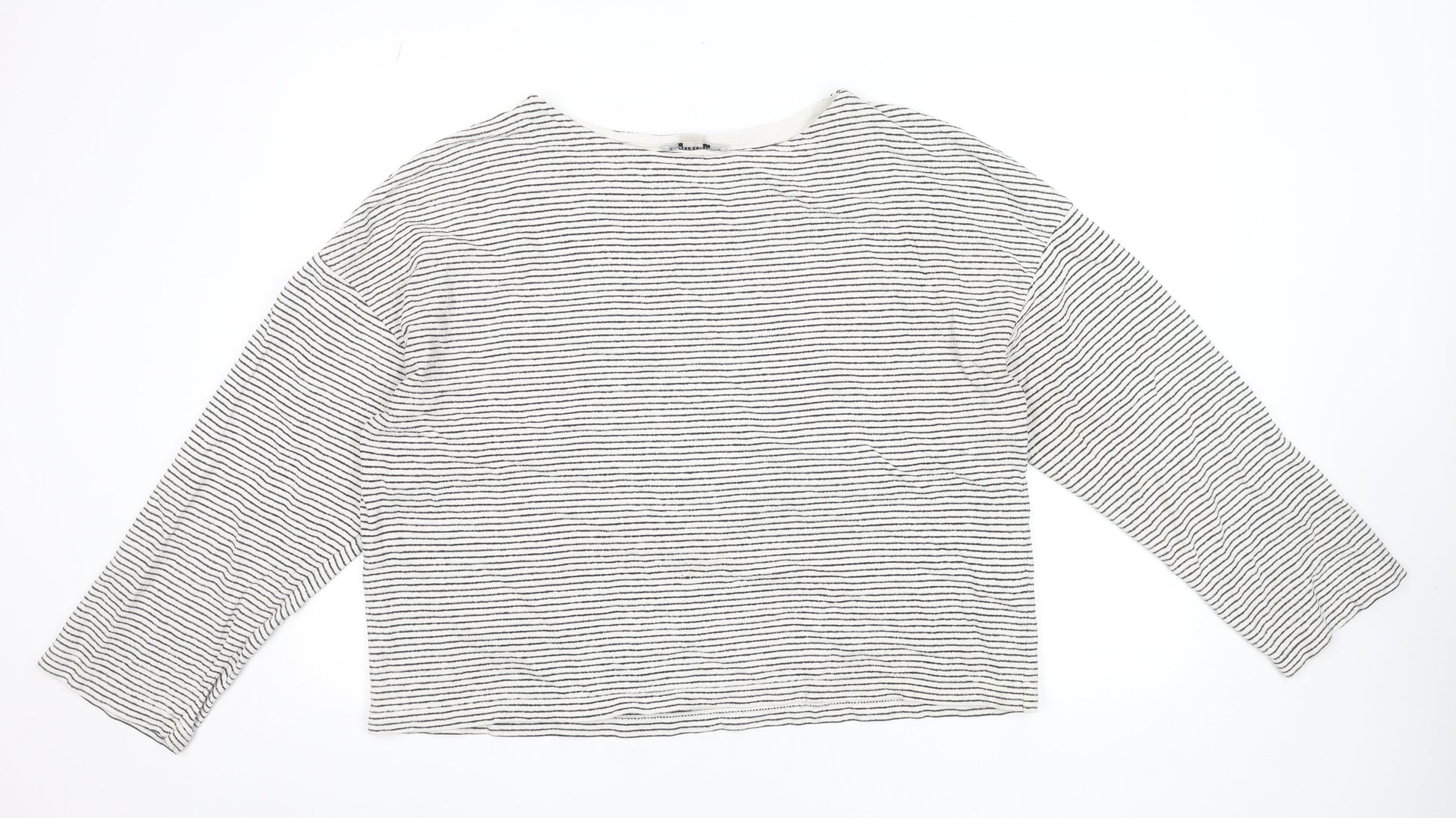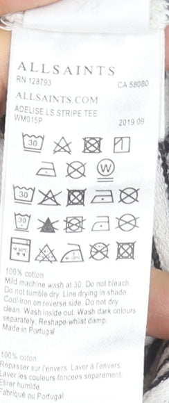 AllSaints Womens White Striped Boat Neck Long Sleeve Cotton Tee XS