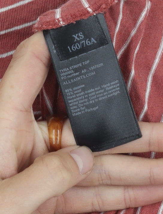 AllSaints Women's XS Red Striped Cold Shoulder Top