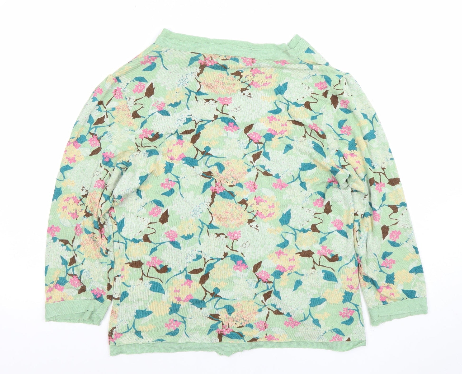 Amari Womens Green Floral Cardigan Small V-Neck Button Front Lightweight