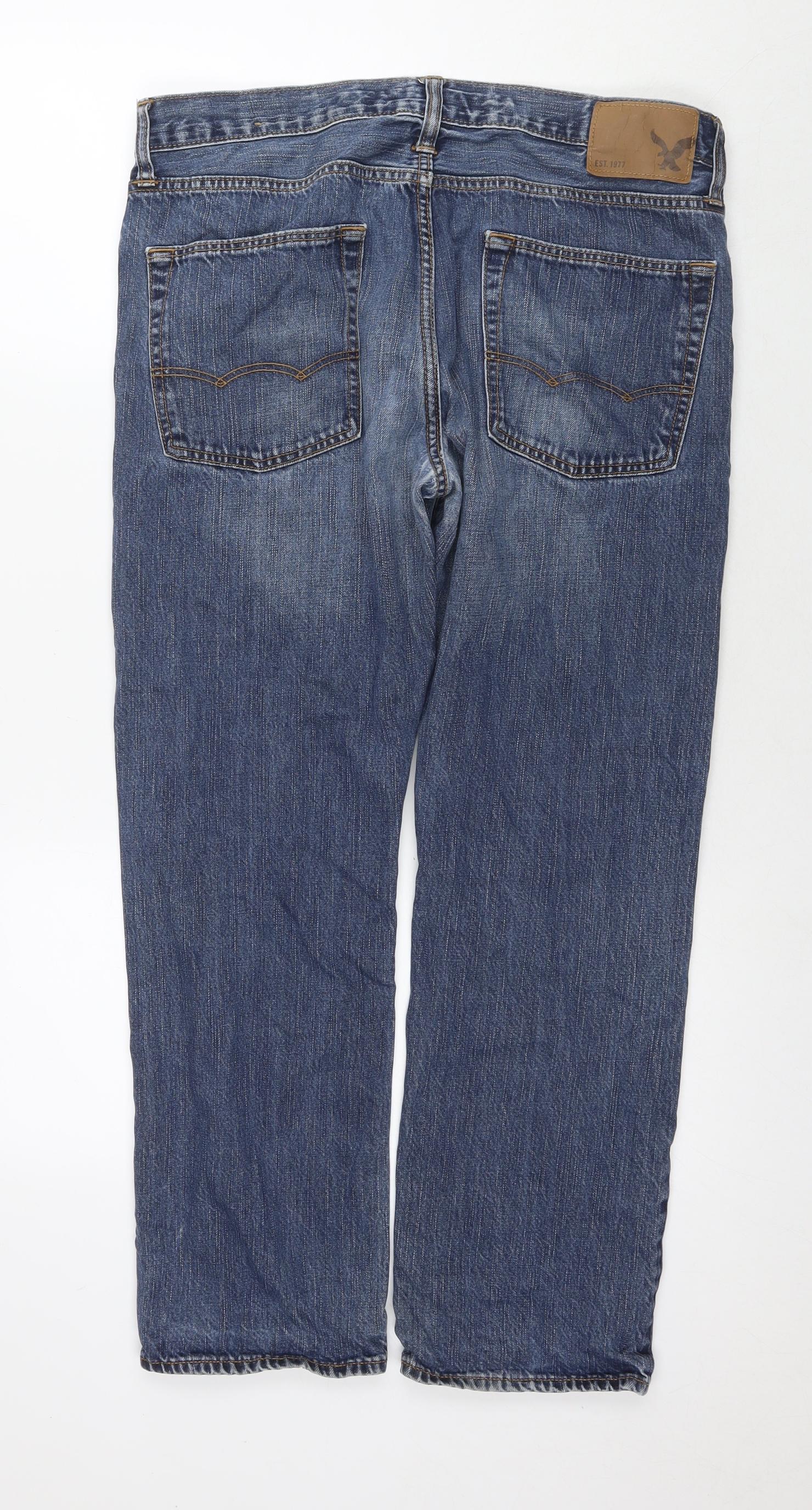 American Eagle Outfitters Mens Blue Cotton Straight Jeans Size 34 in L30 in Regular Zip