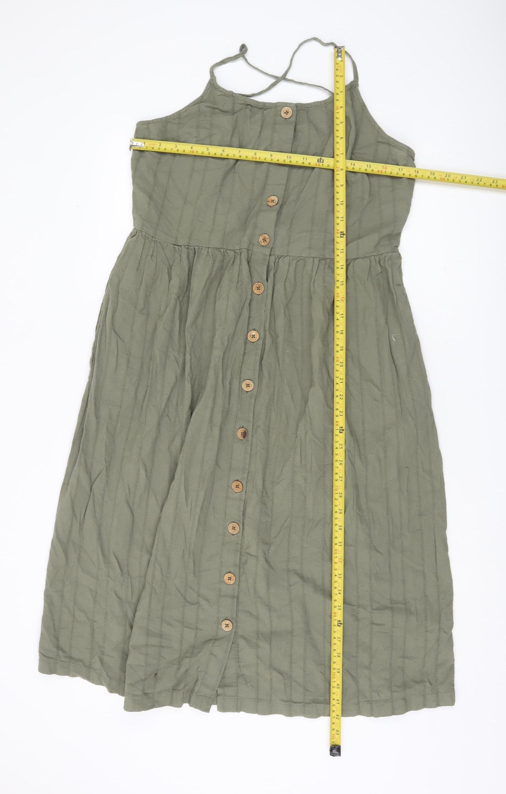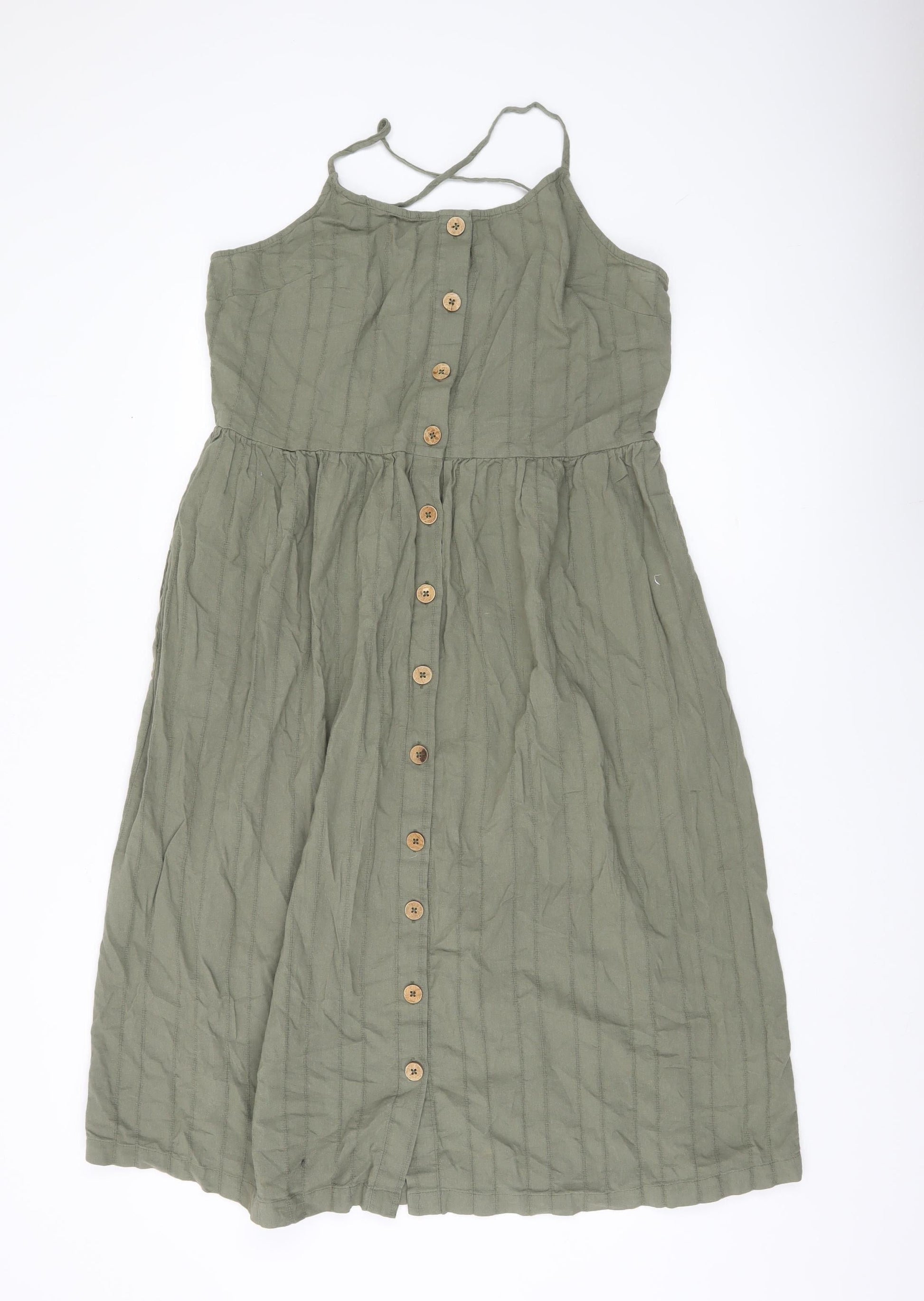 Animal Women’s Green Cotton Midi Sundress Size 14 Button Front