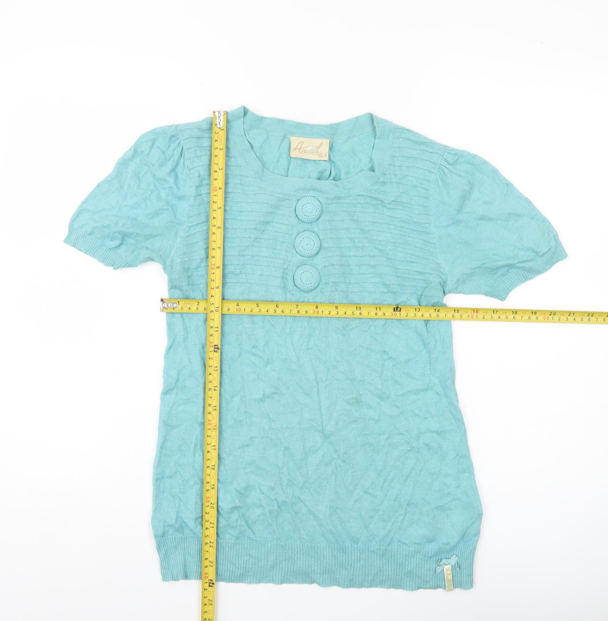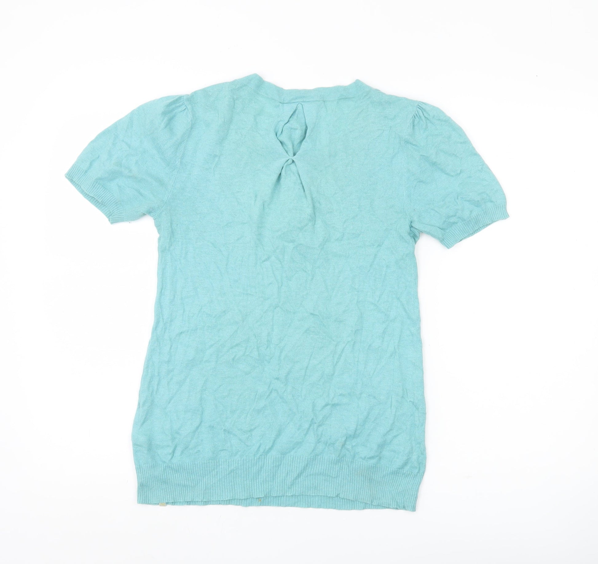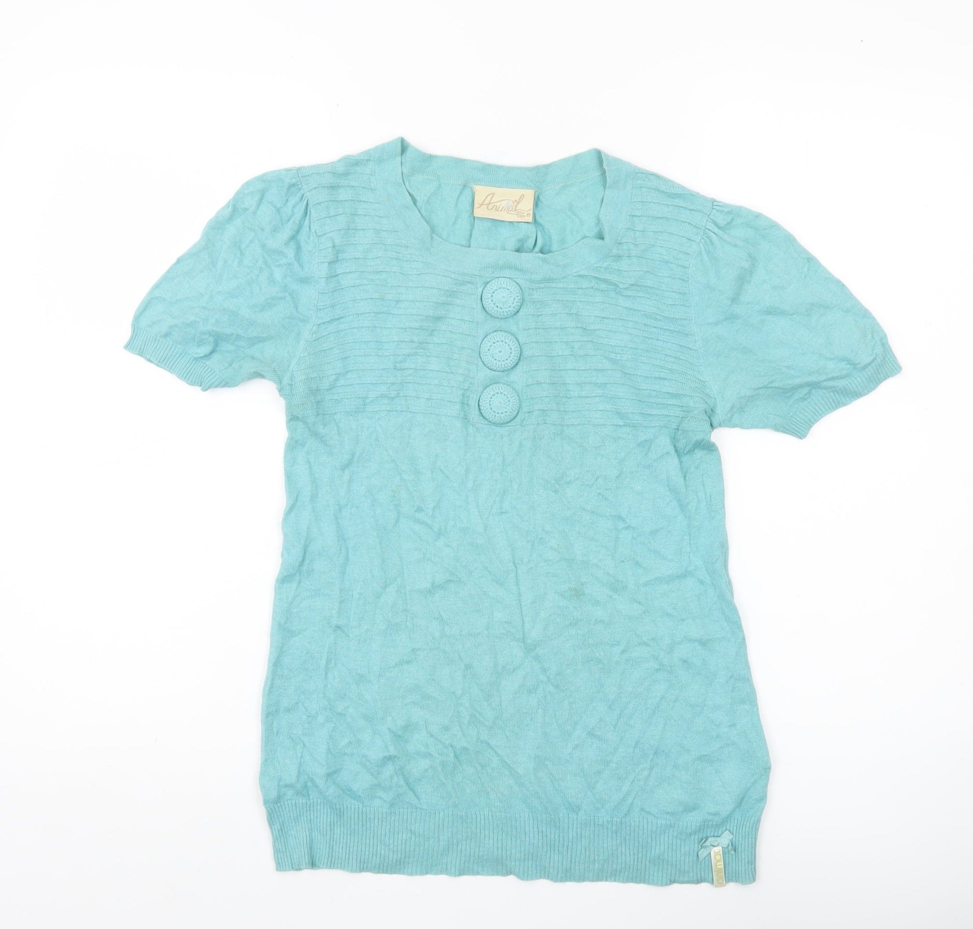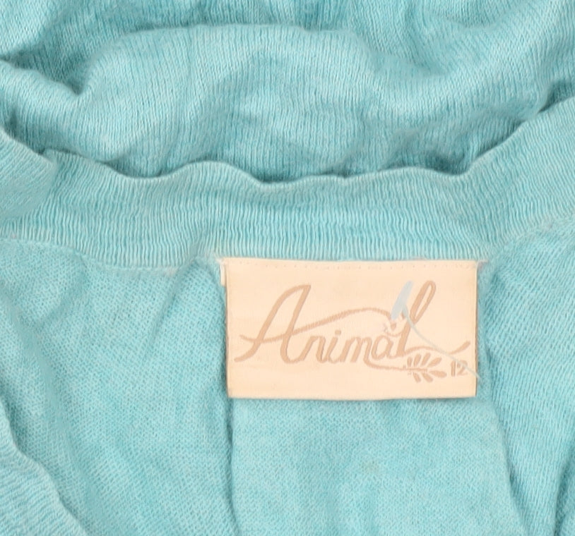 Animal Womens Blue Cotton Blend Pullover Jumper Size 12 Short Sleeve