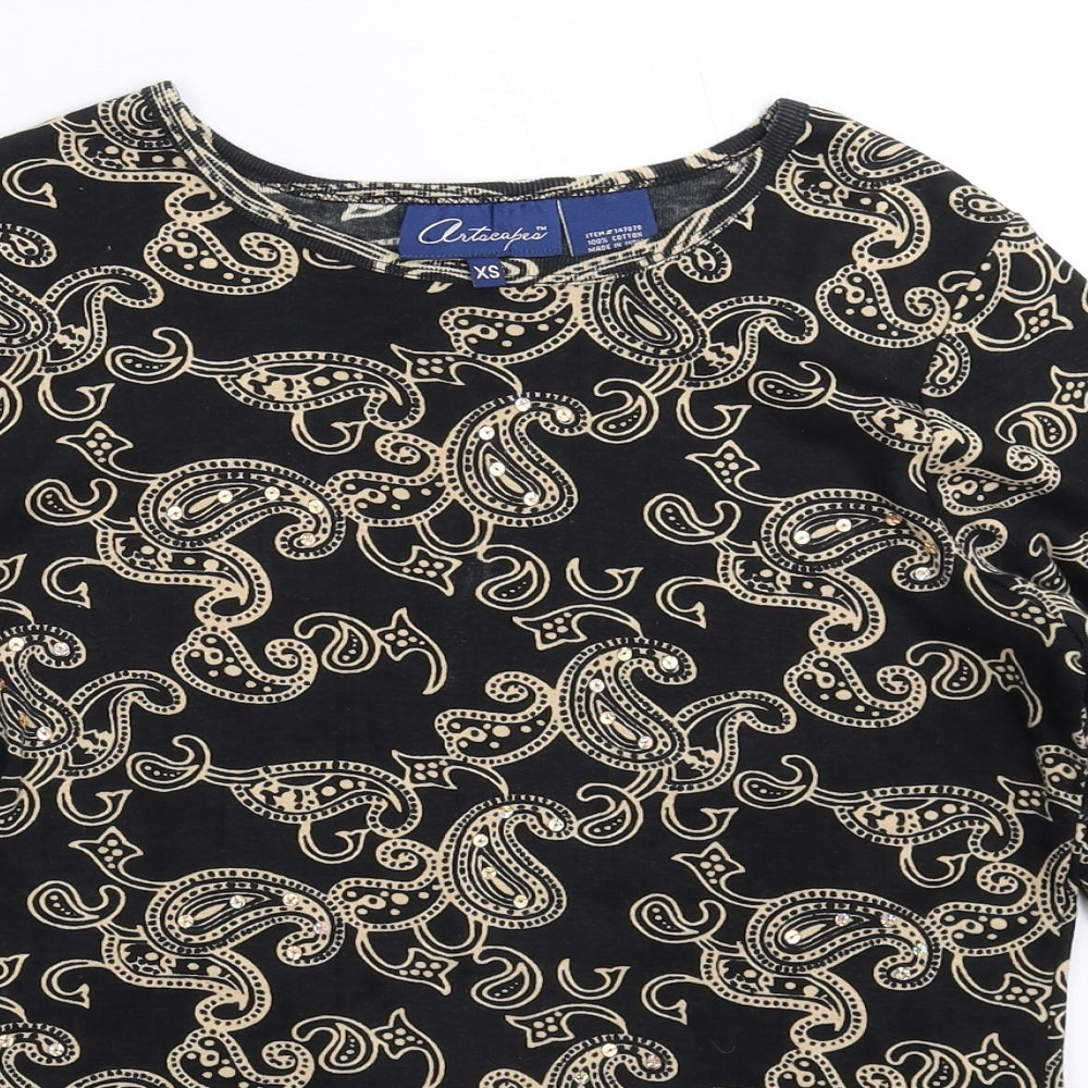 artaeapea Womens Black Knit Basic T-Shirt Size XS