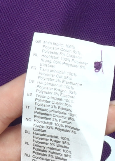 - Material Breakdown: 100% Polyester main body 95% Polyester 5% Elastane collar