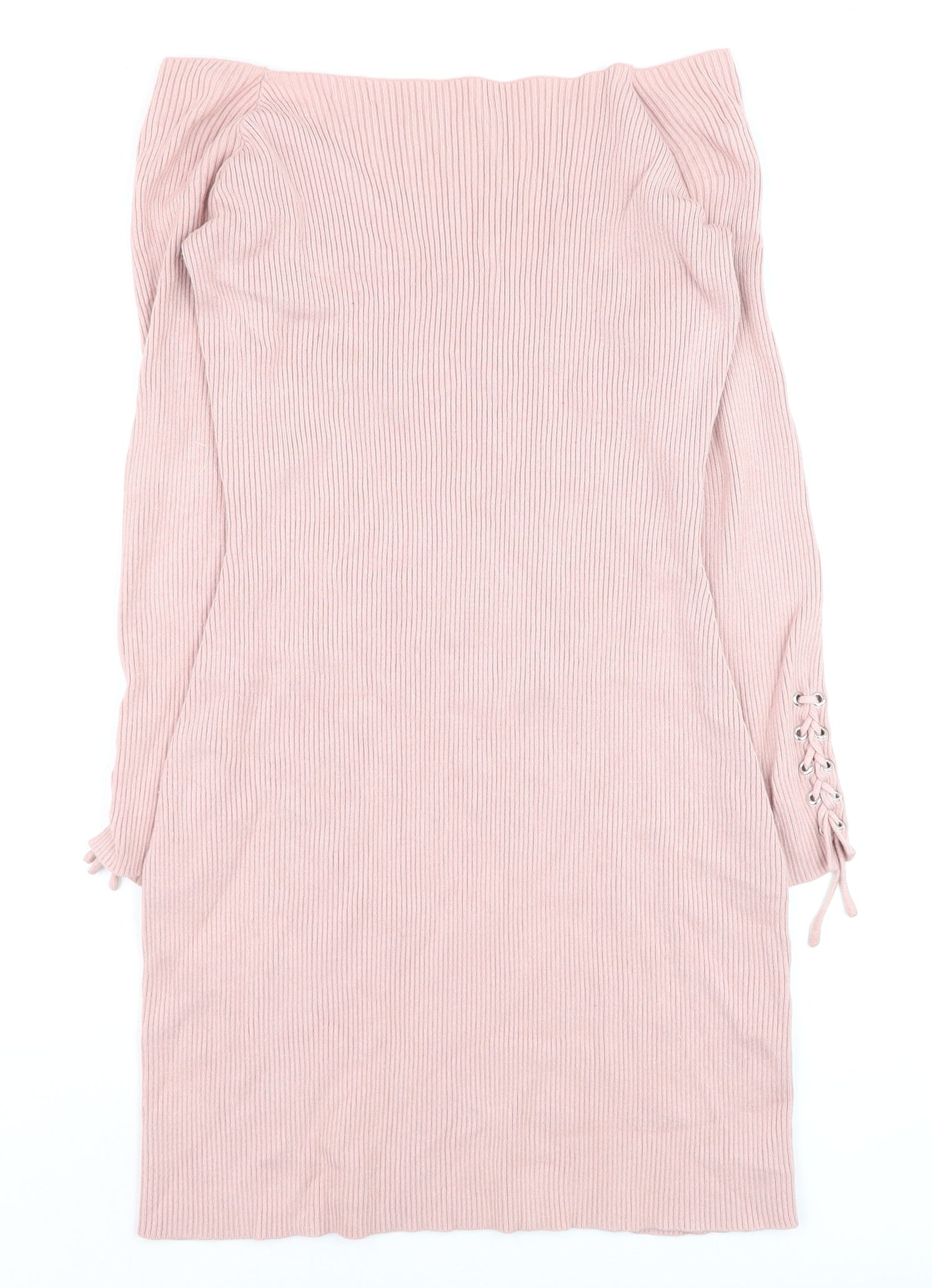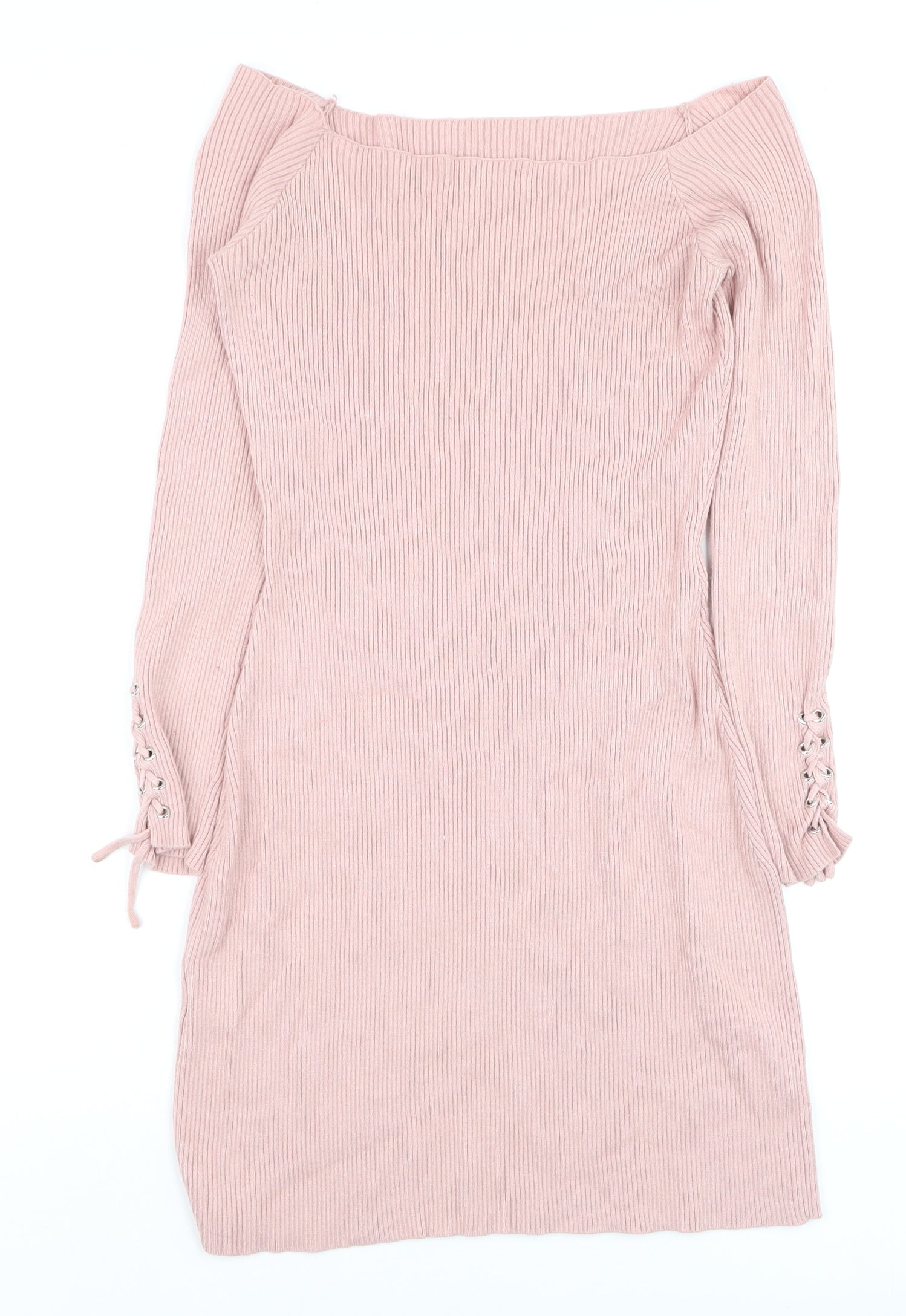 ASOS Women Pink Off Shoulder Rib Knit Bodycon Dress Size 10