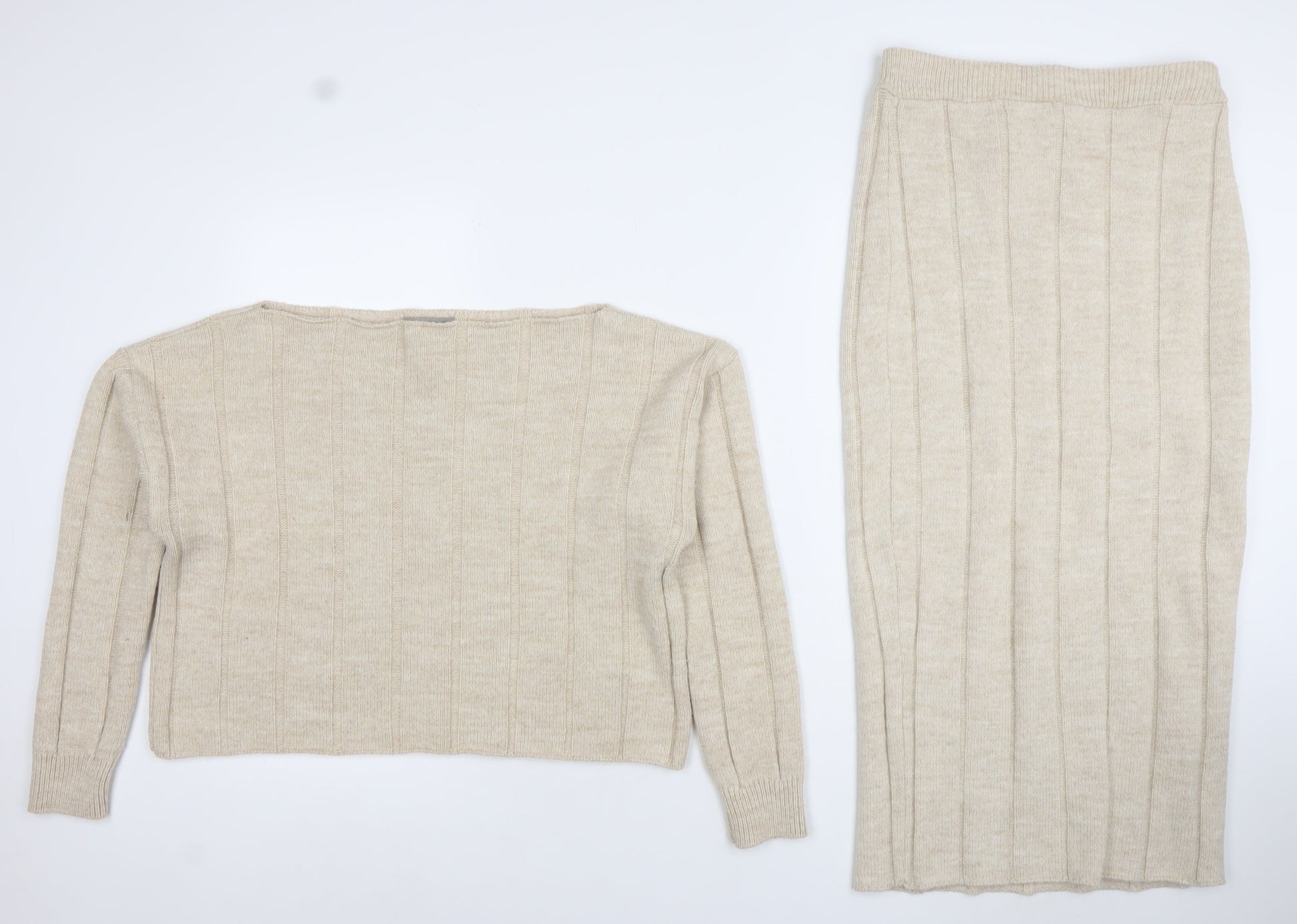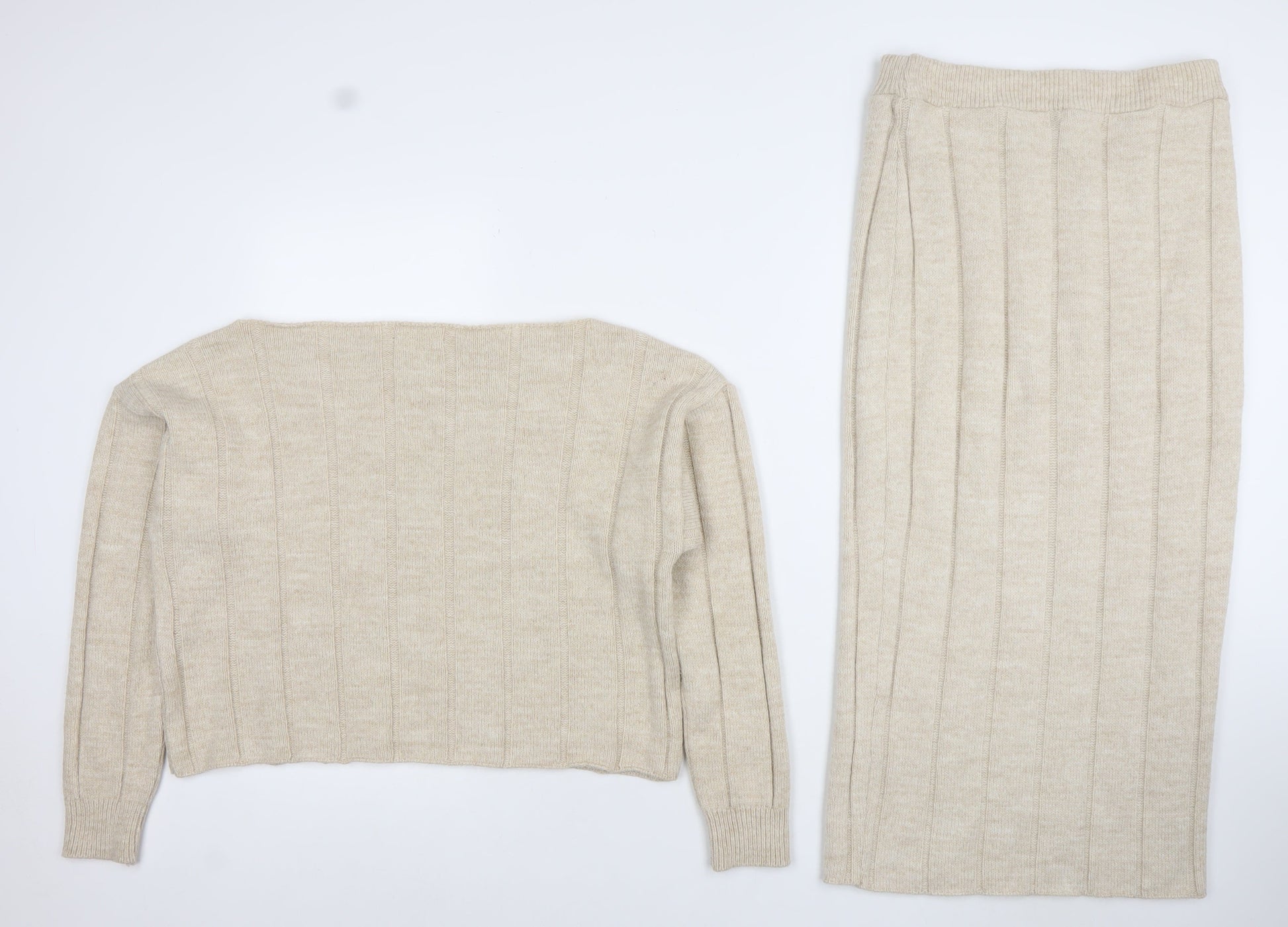 ASOS Womens Beige Knit Midi Skirt Set Size 10 Wool Blend