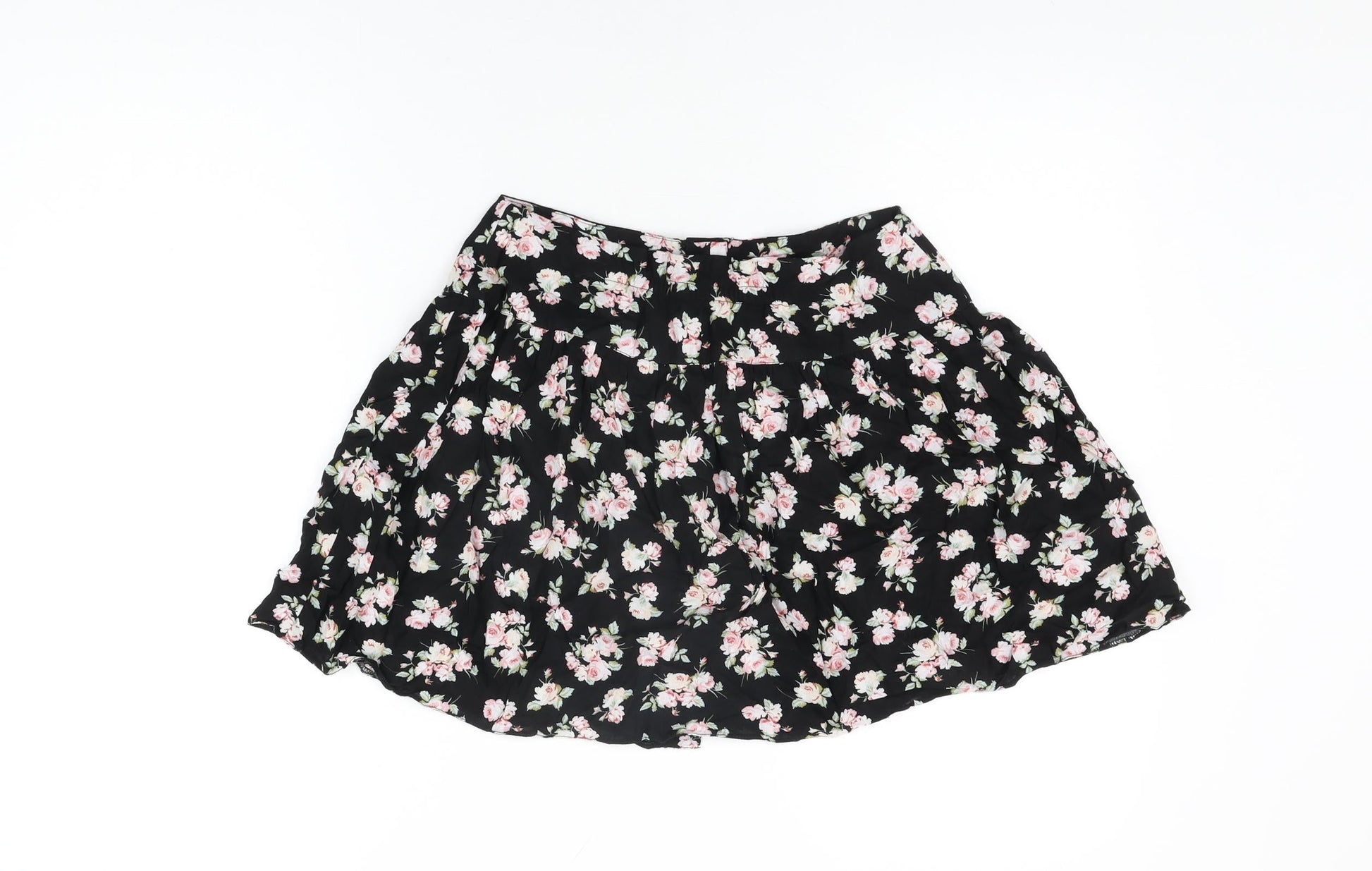 ASOS Womens Black Floral Viscose Mini Skirt Size 10 Button