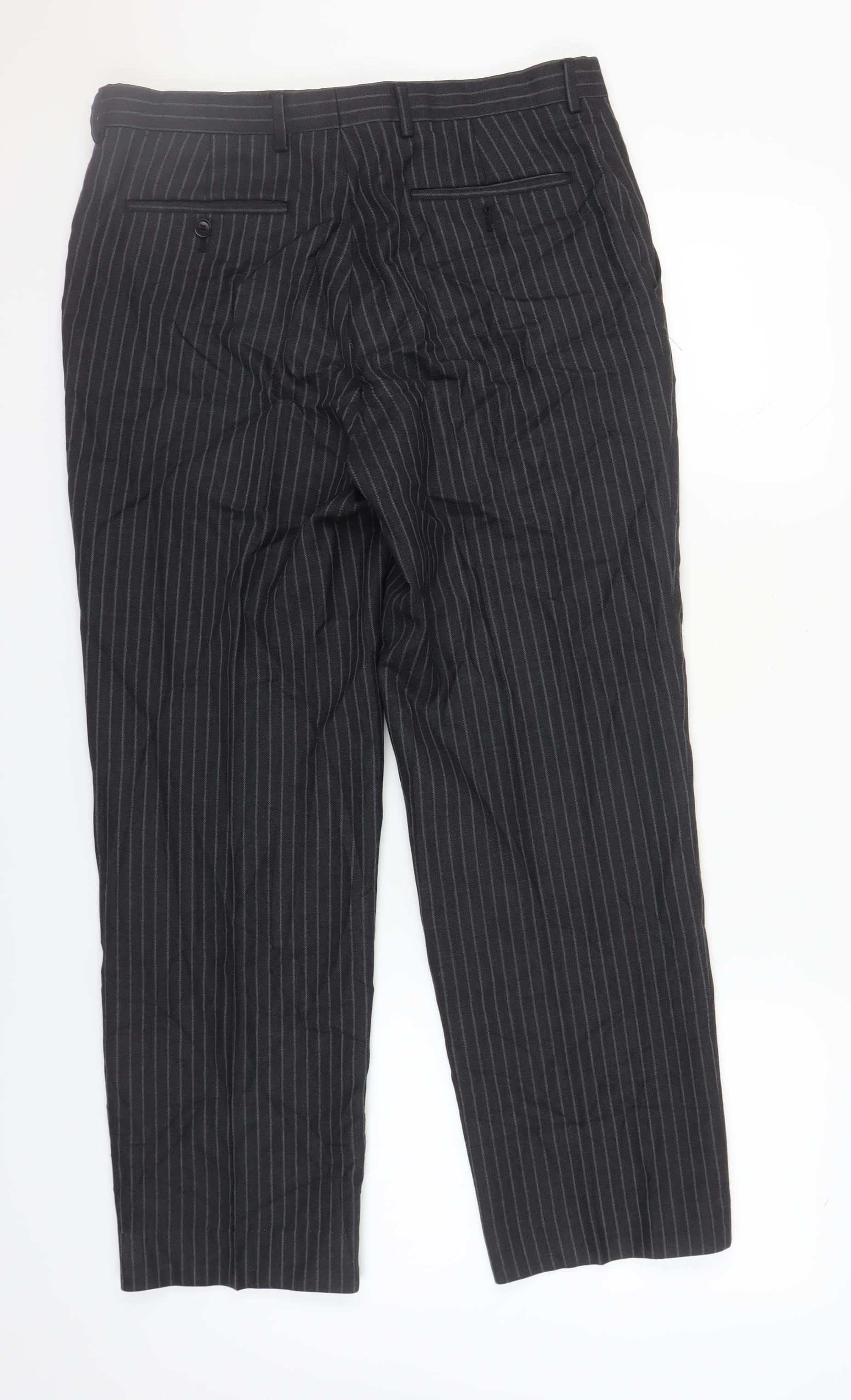 Austin Reed Men's Black Wool Striped Trousers 34S