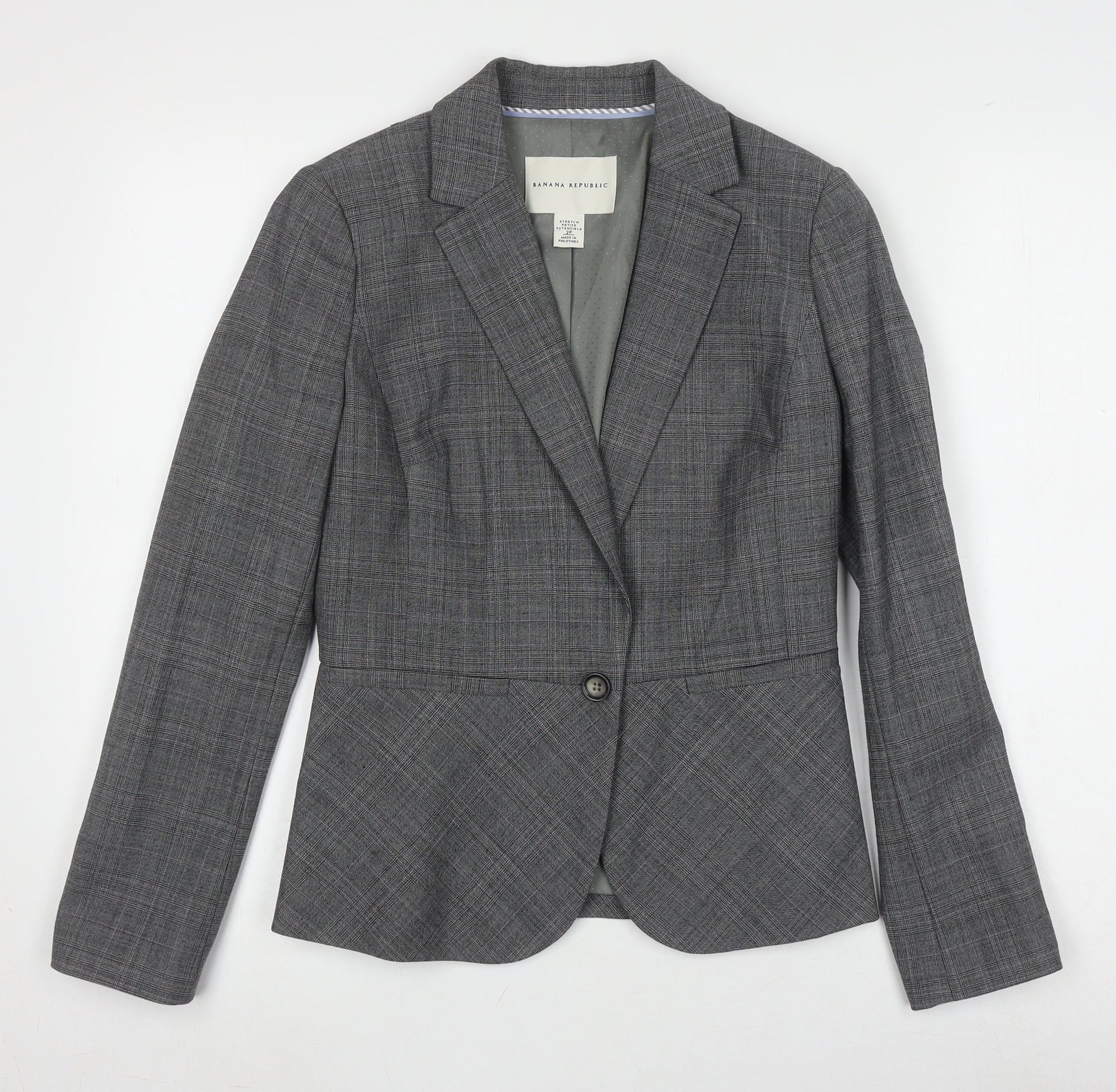 Banana Republic Women's Grey Blazer, Size 2, Check Pattern