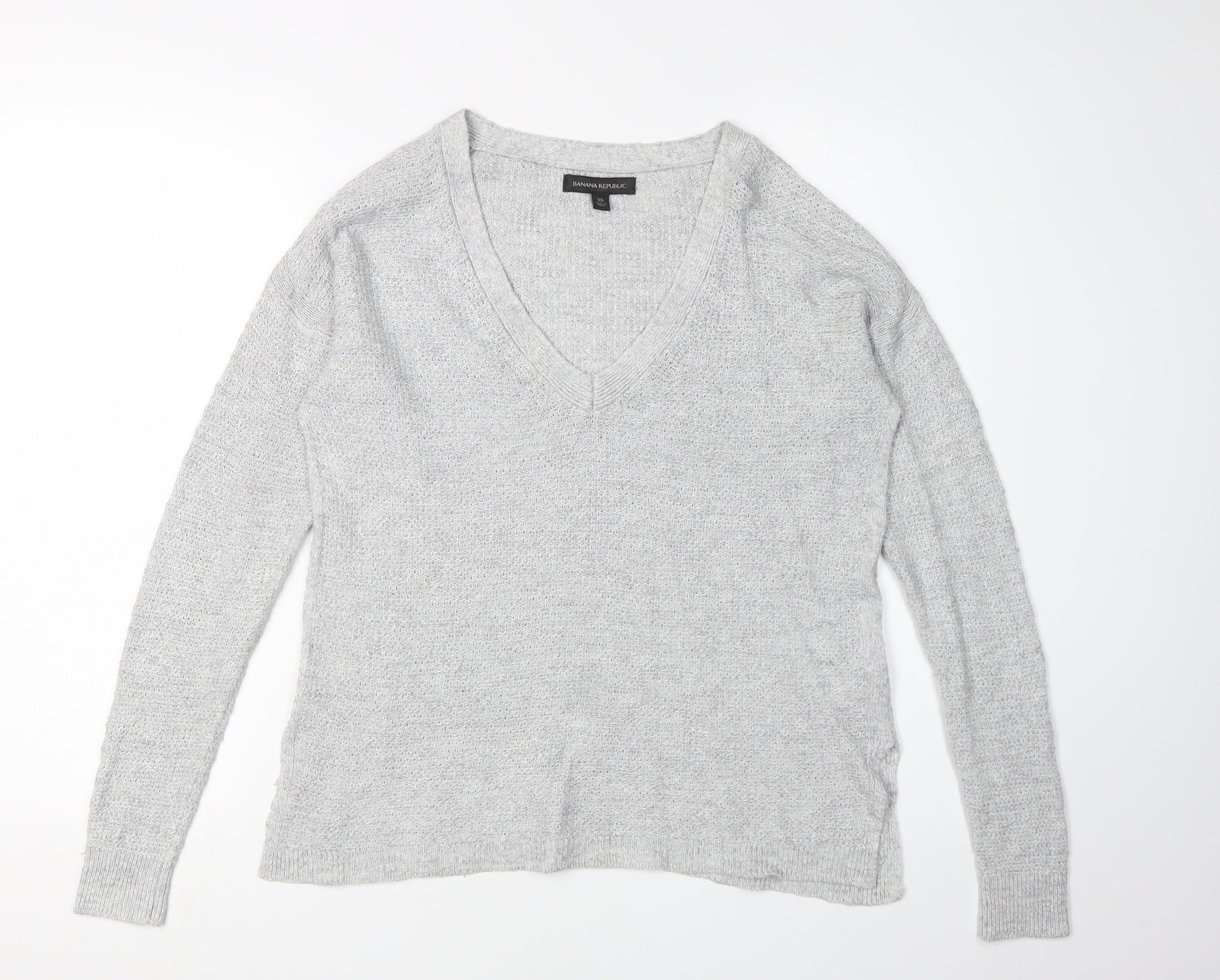 Banana Republic Women's Grey V-Neck Pullover Jumper XS