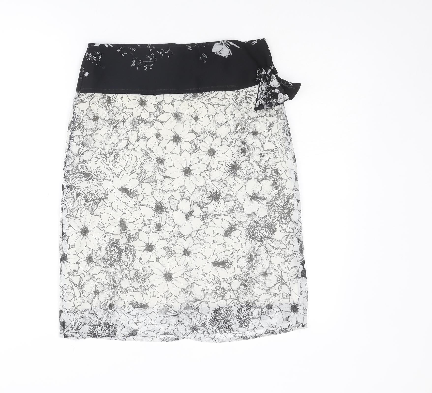 Bandolera Womens White Floral Polyester A-Line Skirt Size 8 Zip