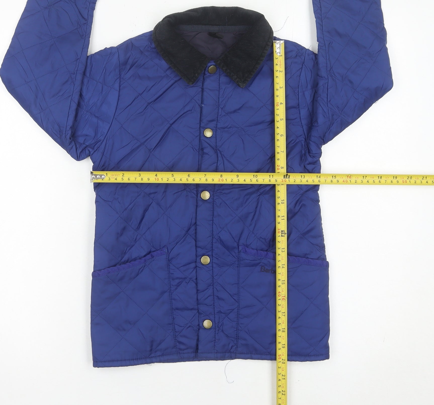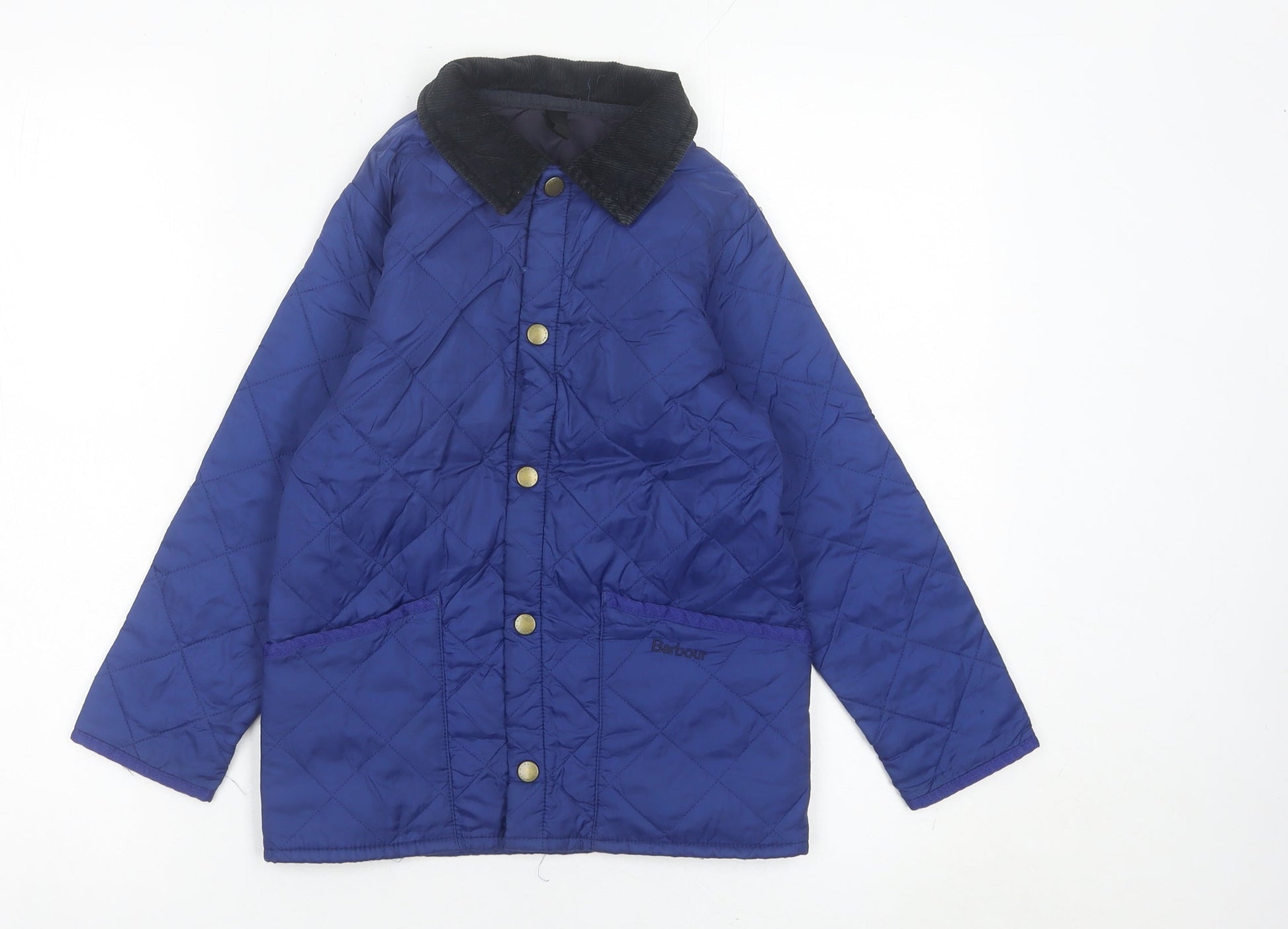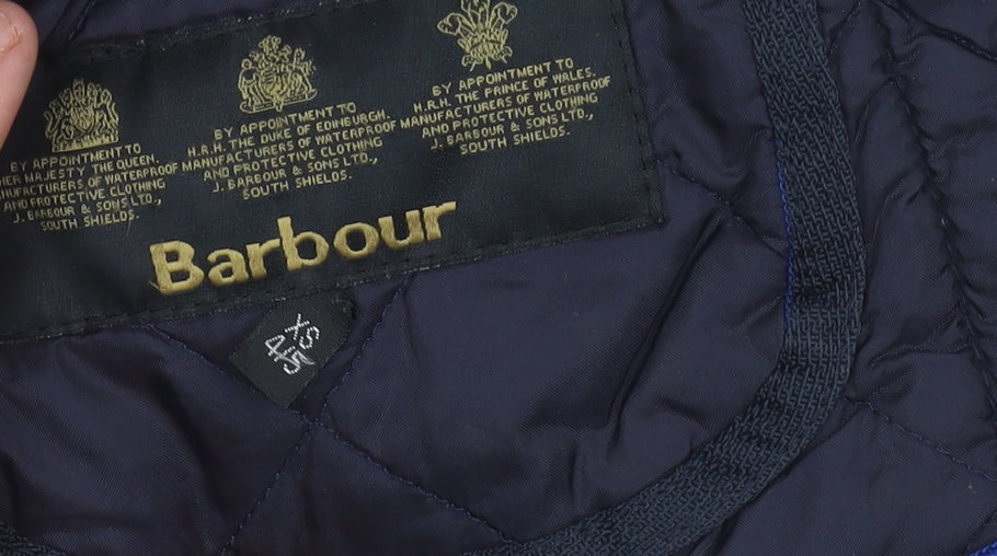 Barbour Boys Blue Quilted Jacket 2XS Mid-Length Snap Button Casual Coat
