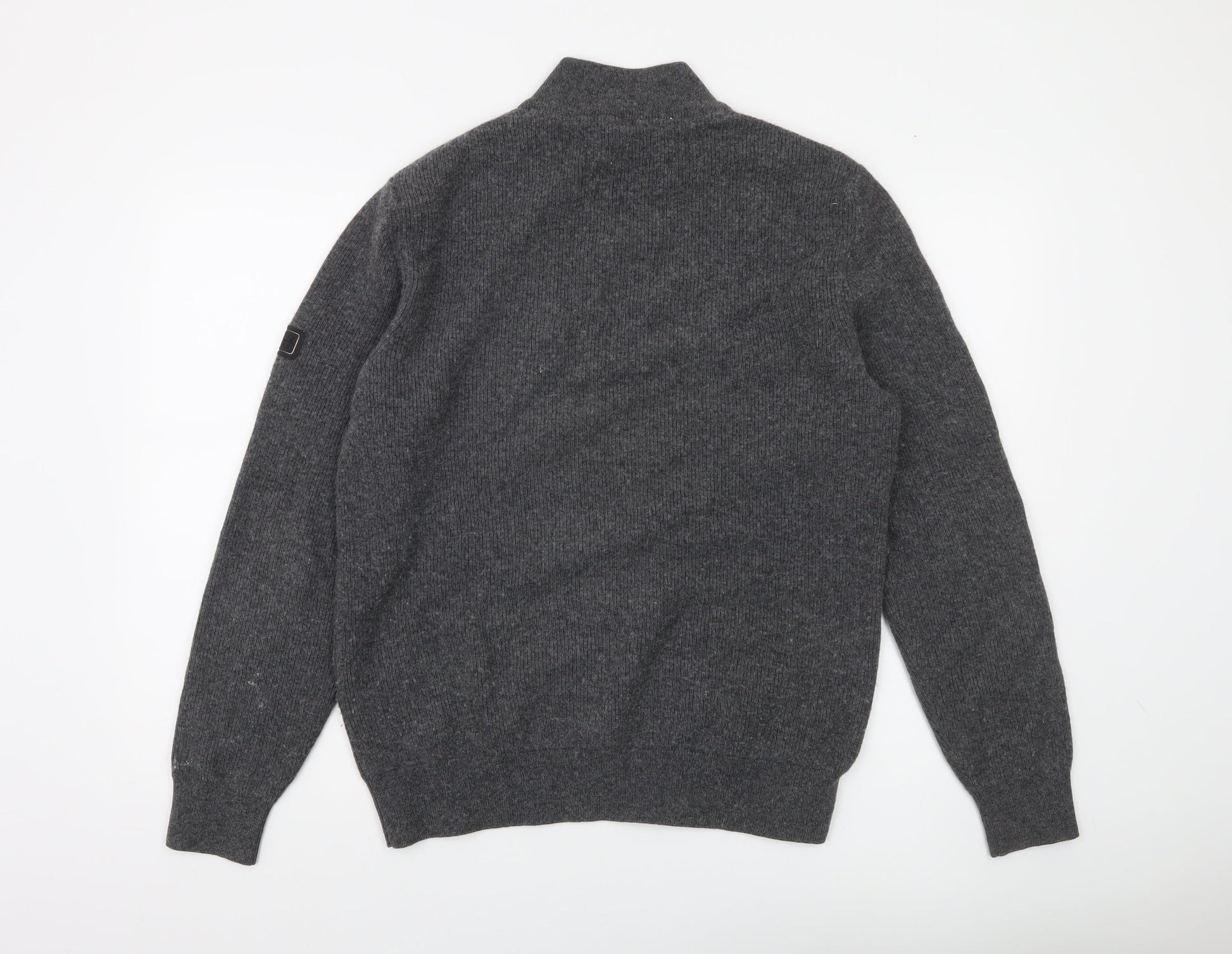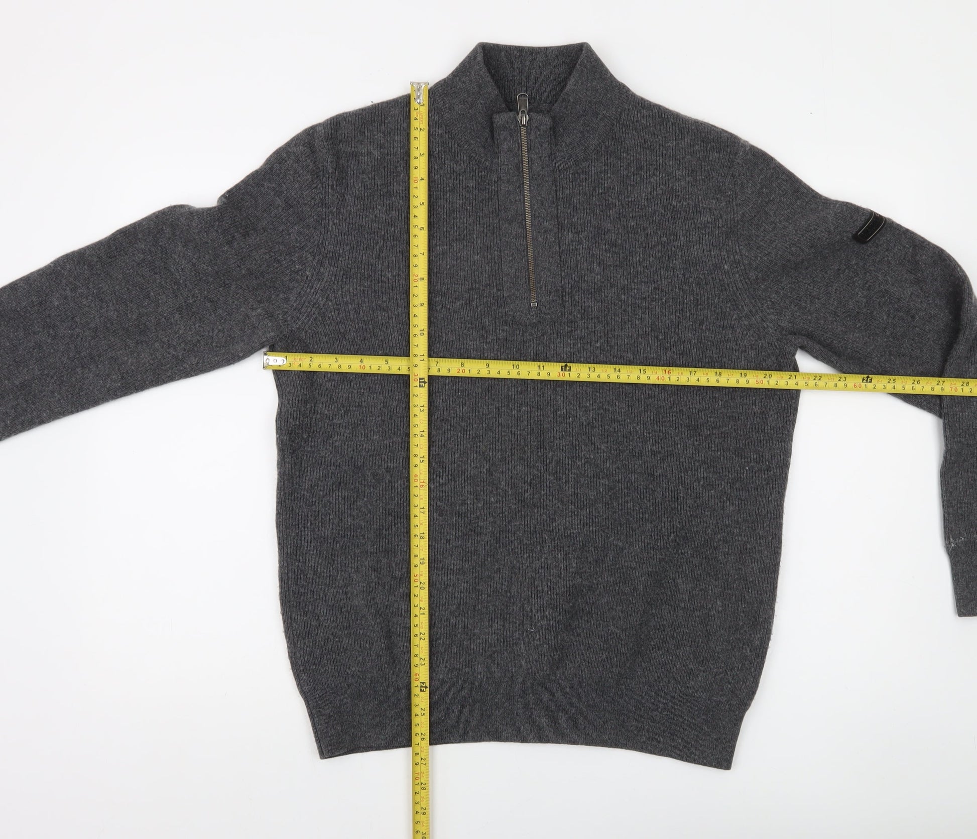 Barbour International Mens Grey Wool Cotton 1/2 Zip Jumper Size S